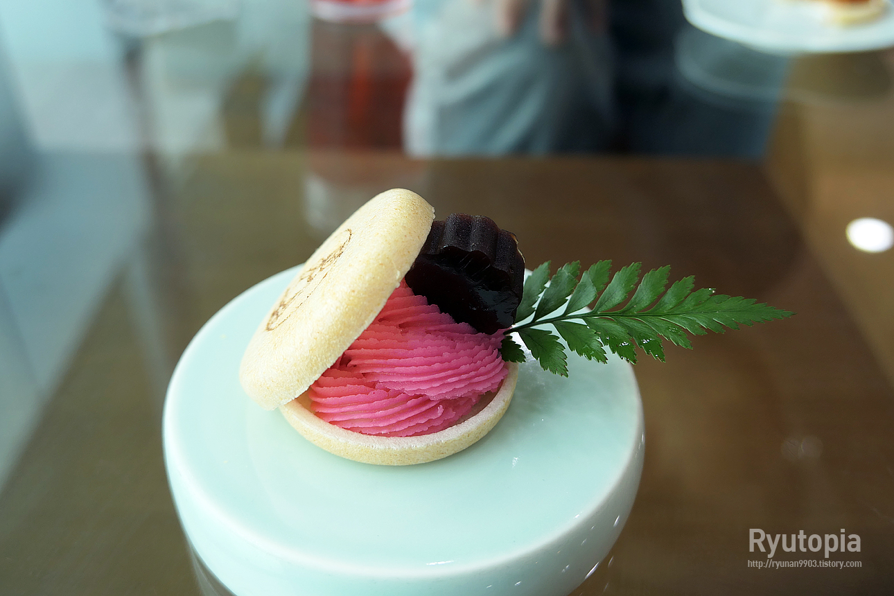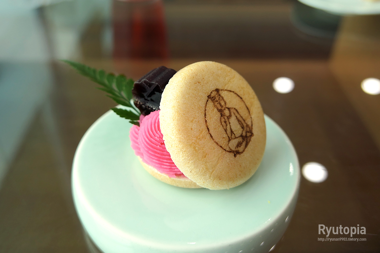 만듦새가 진짜 예뻐요. 쌀과자 사이에 보리수로 만든 앙금, 그리고 둥근 톱니 모양의 양갱을 담아 모양을 내었는데