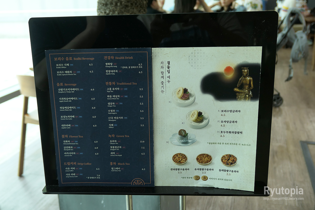 커피의 경우 에스프레소 계열의 음료(아메리카노 등)는 없고 그냥 드립커피만 존재해요. 대부분이 건강차, 전통차 위주.