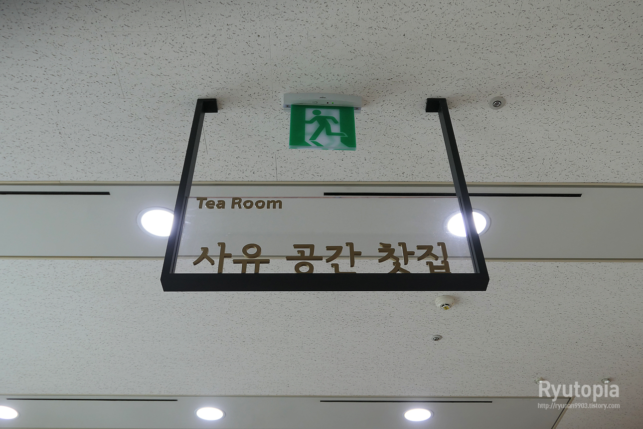 자연채광 들어오는 저 통유리 너머에 '사유 공간 찻집' 이라는 작은 간판이 보이는데, 워낙 건물 외진 곳에 떨어져있어