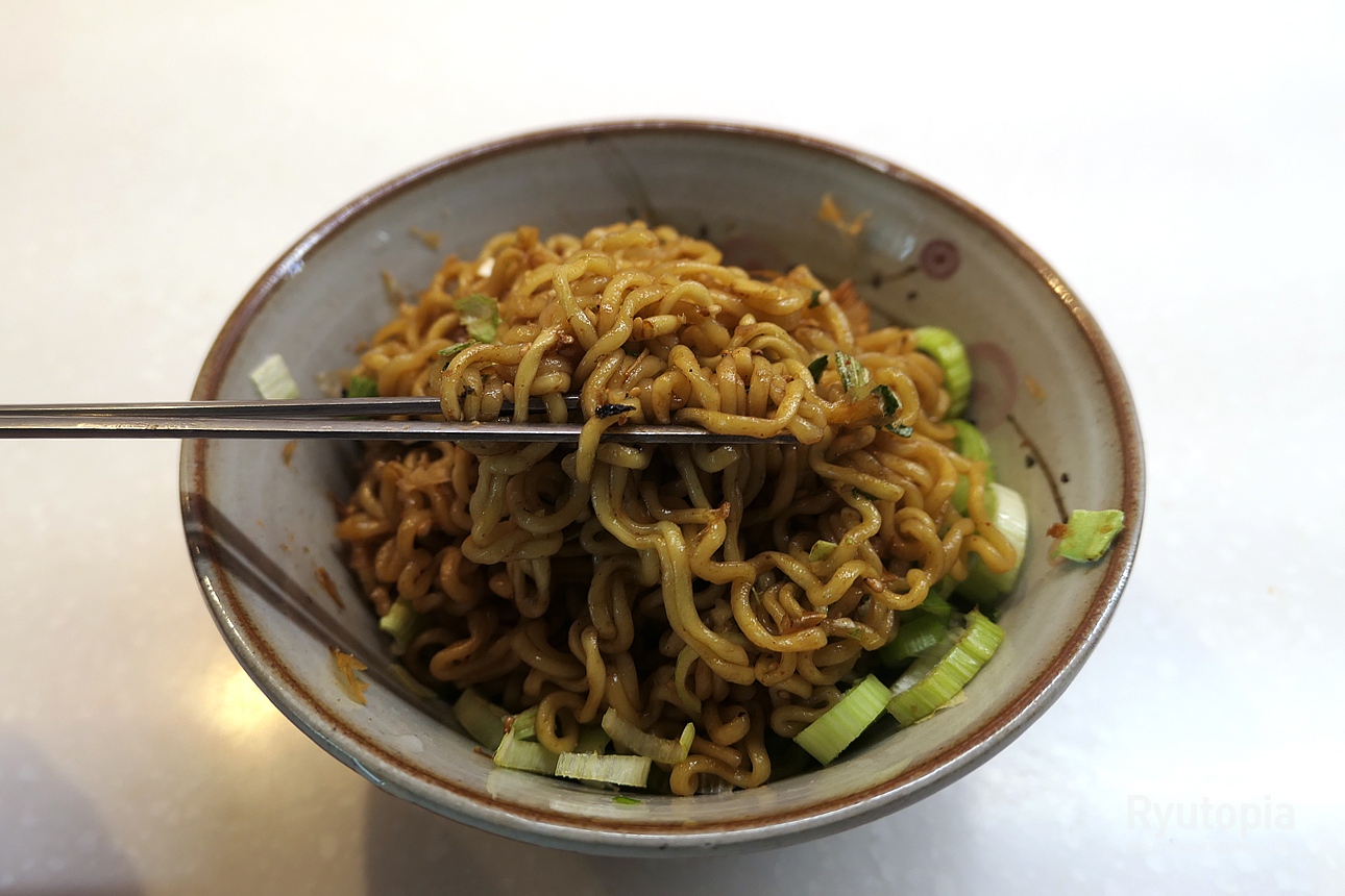 맛은 가쓰오부시 향이 진하면서 짭짤한 볶음국수의 맛. 실제 이게 마제소바와 동일한 맛이냐고 물으면 솔직히 NO.