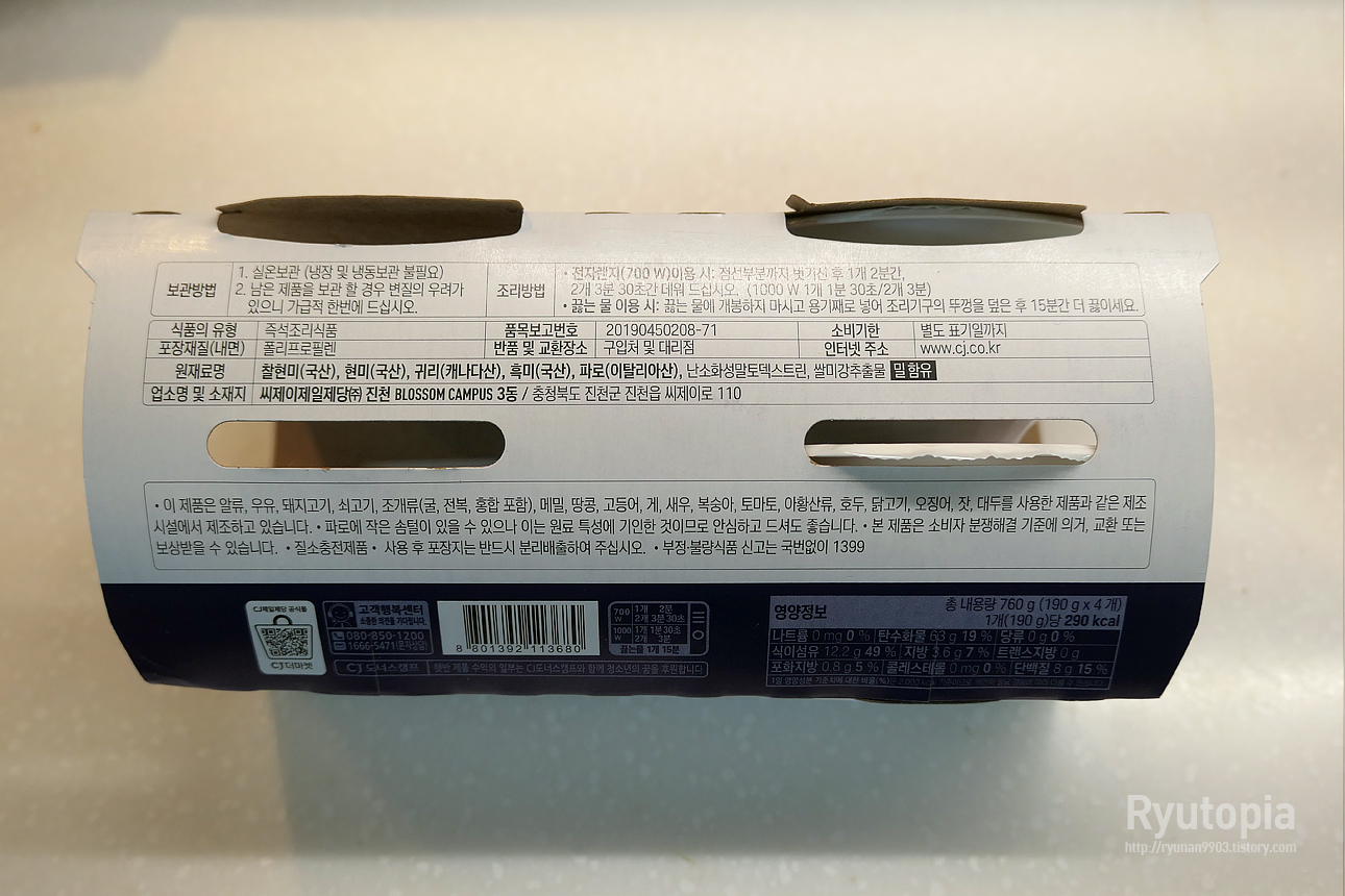 이렇게 개별 포장되어 있는 통곡물밥 햇반이 총 네 개가 들어있는데요,