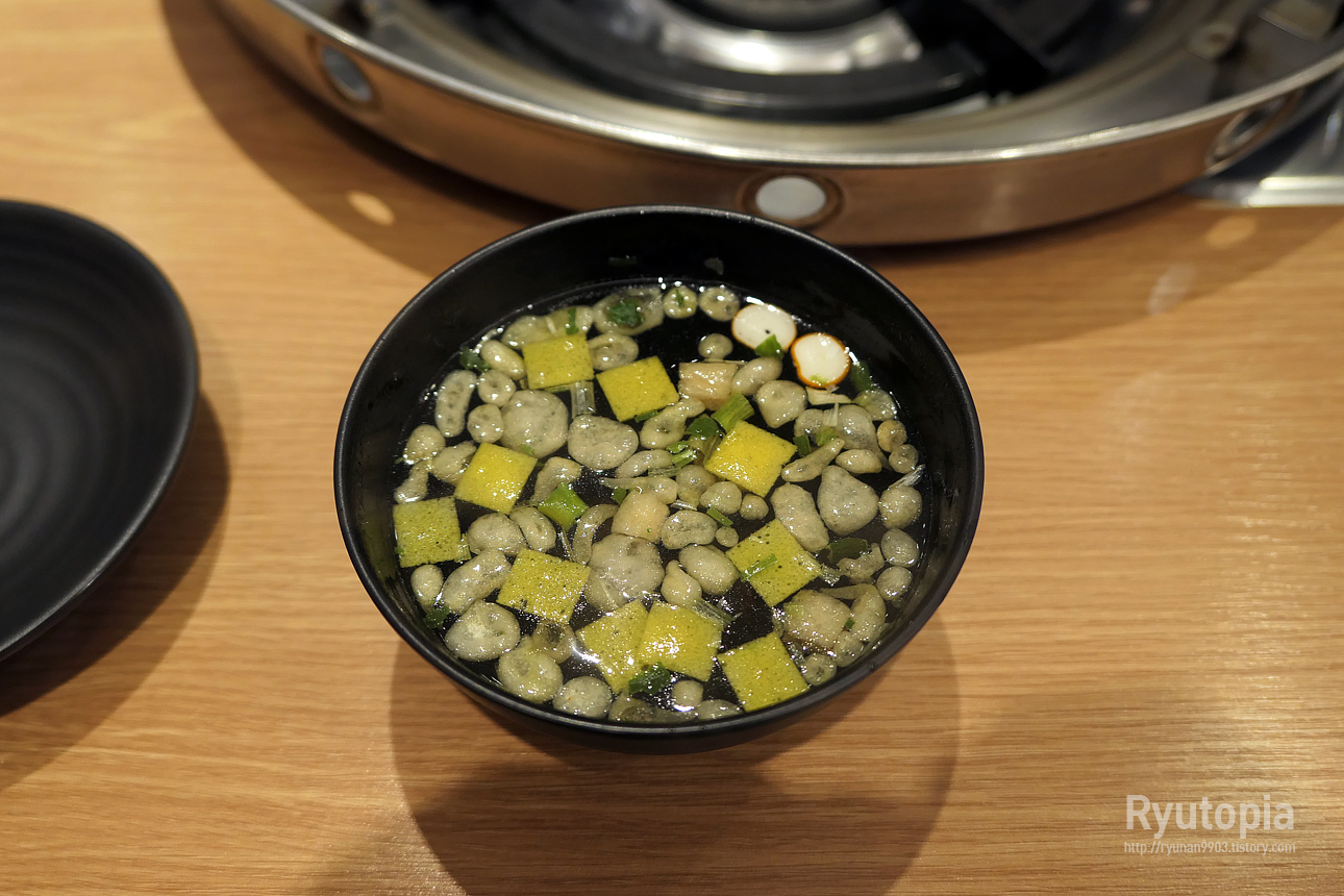 테이블에서 직접 조리하는 것이 아닌 주방에서 조리를 완전히 마친 상태로 제공됩니다. 우동사리도 말이지요.