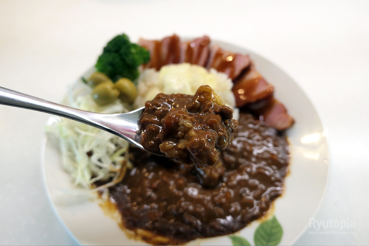 마늘 풍미가 은은하게 배어는 레토르트 카레로 일본식 카레의 단맛이 다른 일본카레에 비해 살짝 덜하다 느껴지는 편이지만