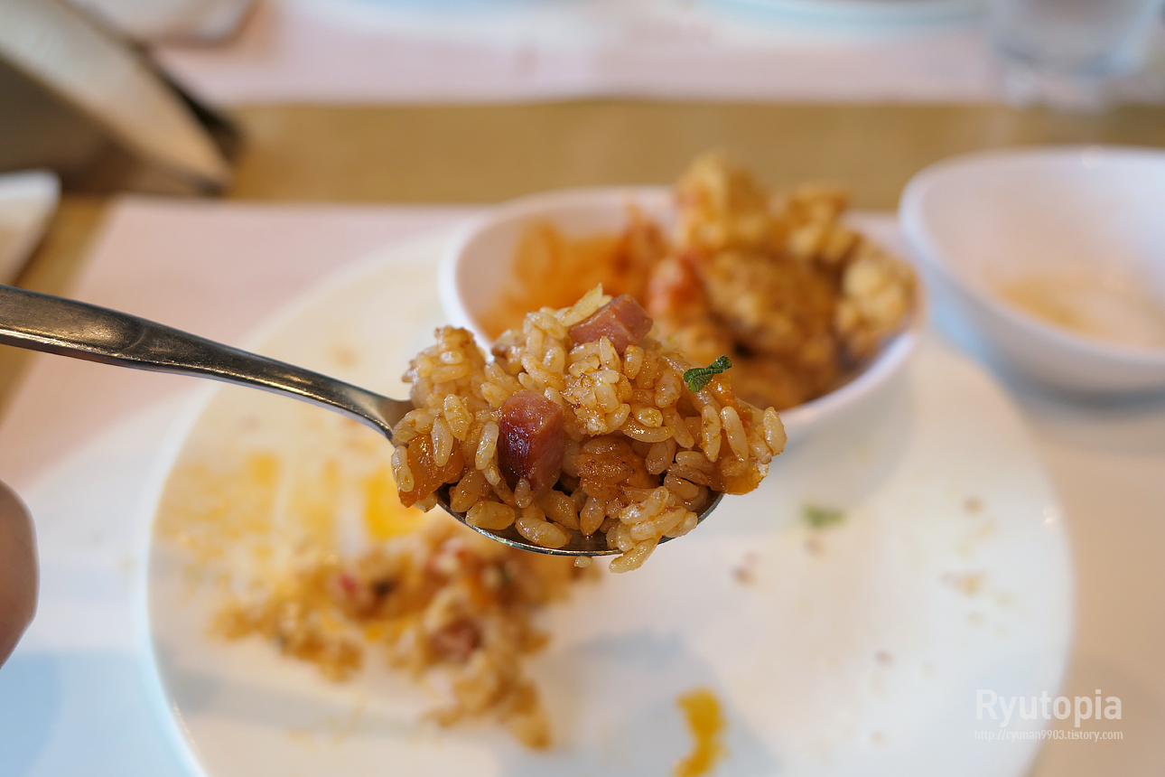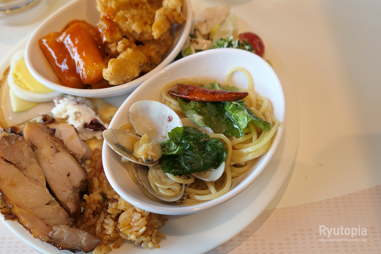 세 번째 접시는 볶음밥, 봉골레 스파게티 등 앞에서 먹지 않았던 것들도 조금 가져와 보았습니다.