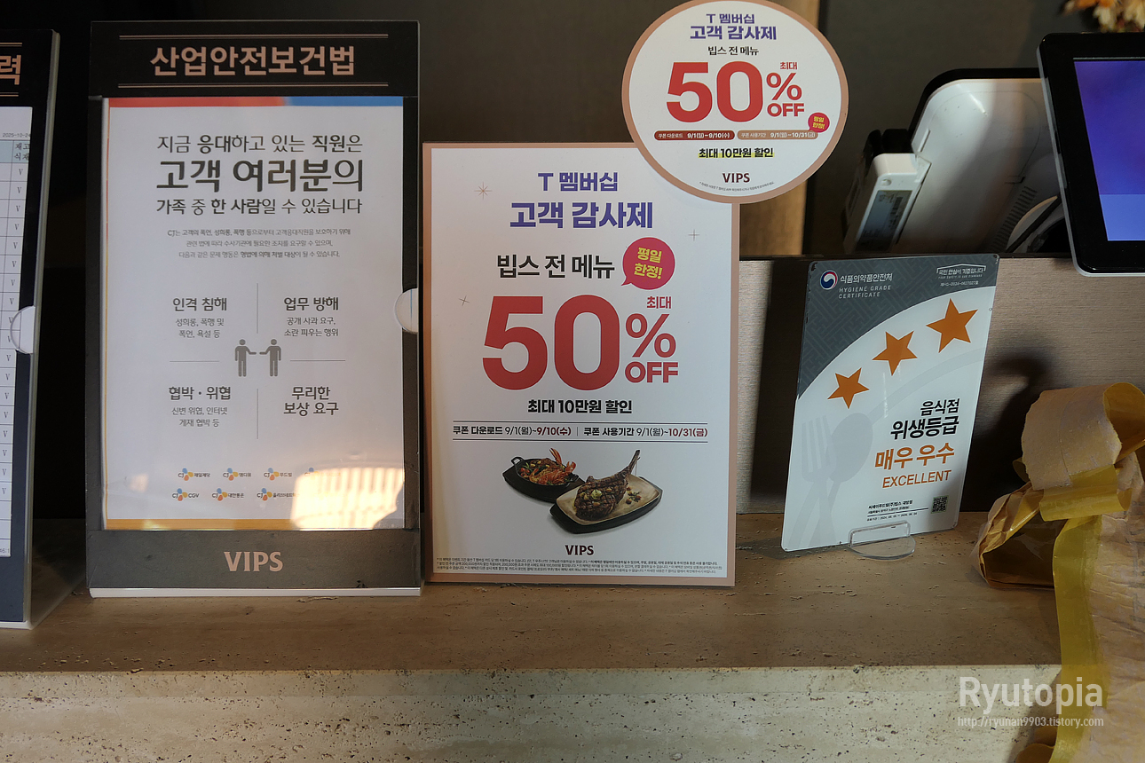 지난 9~10월 두 달동안 SKT에서 고객감사제 이벤트로 '빕스 샐러드바 50% 할인쿠폰' 을 뿌린 적이 있었습니다.