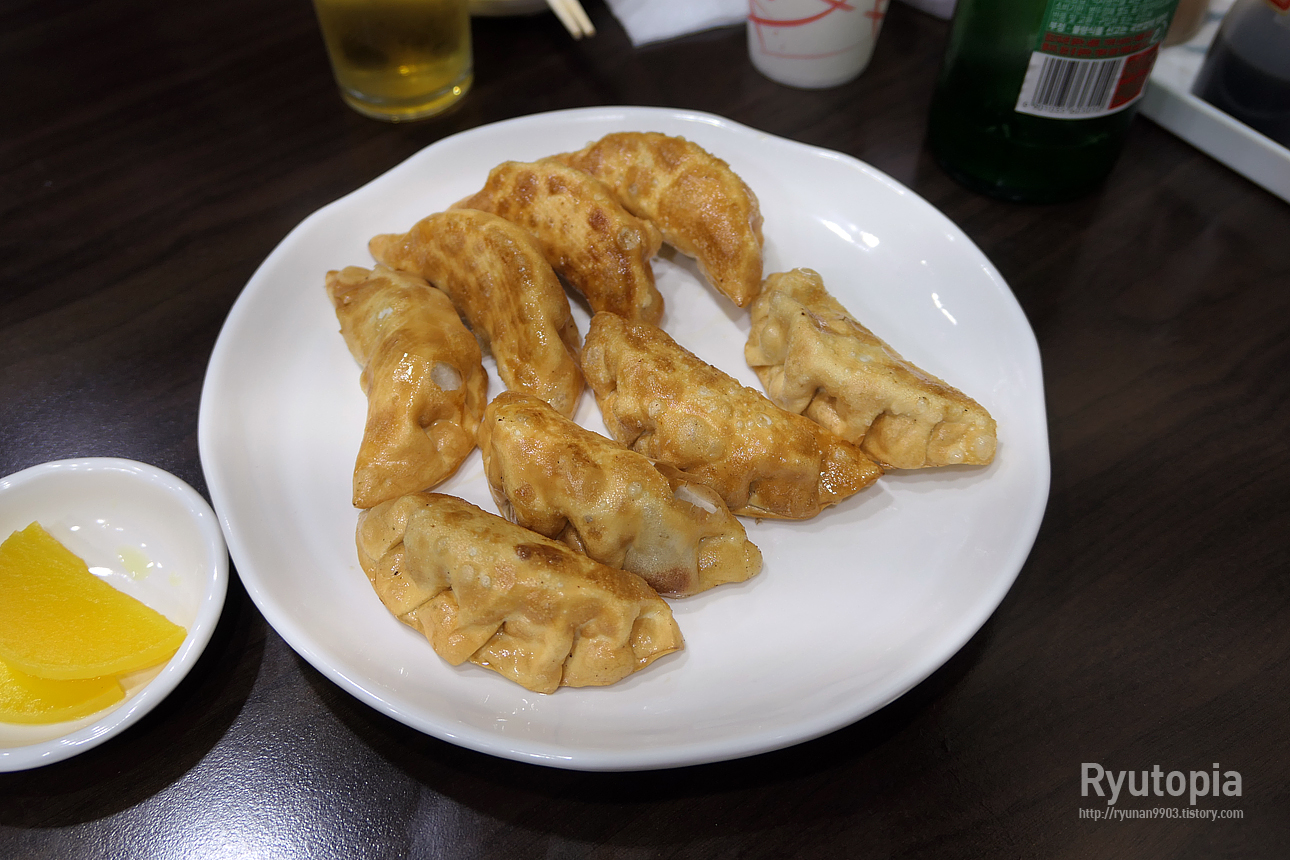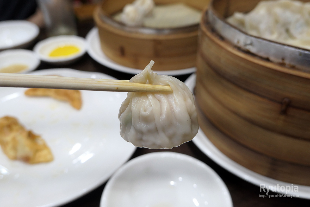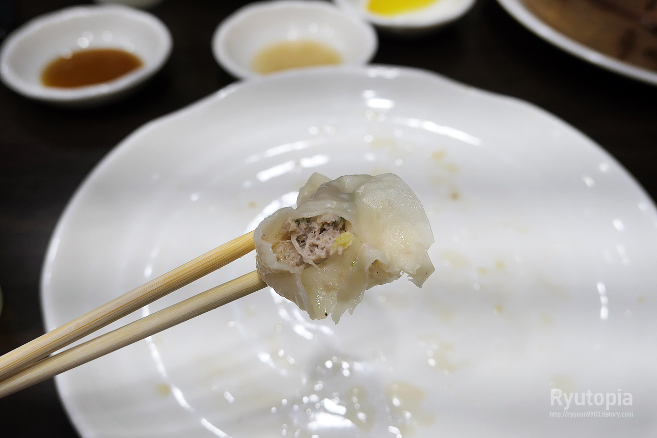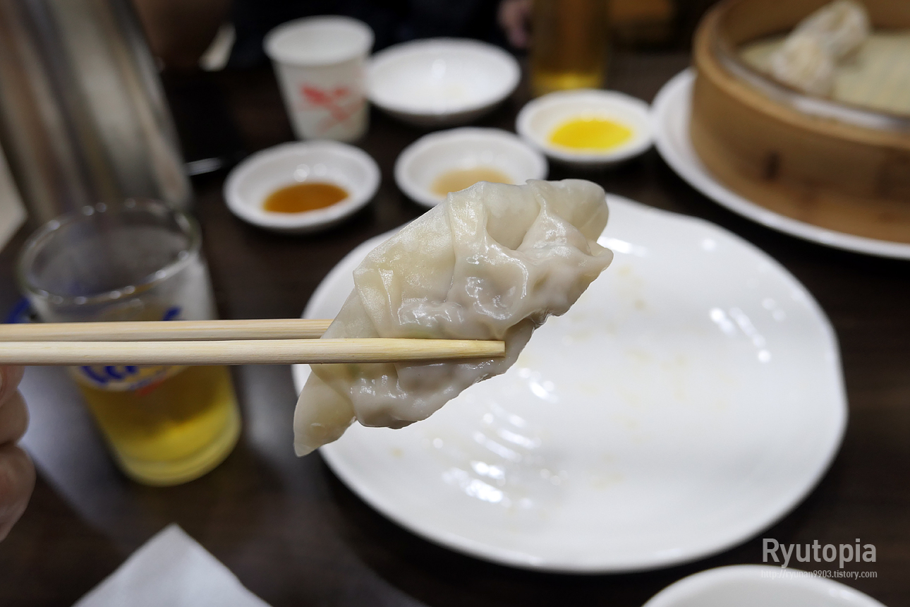 촉촉한 만두피 속 다진 돼지고기소의 진한 맛이 몇 개를 먹어도 질리지 않는 맛이라 이 쪽도 군만두 못지않게 매우 훌륭한 편.