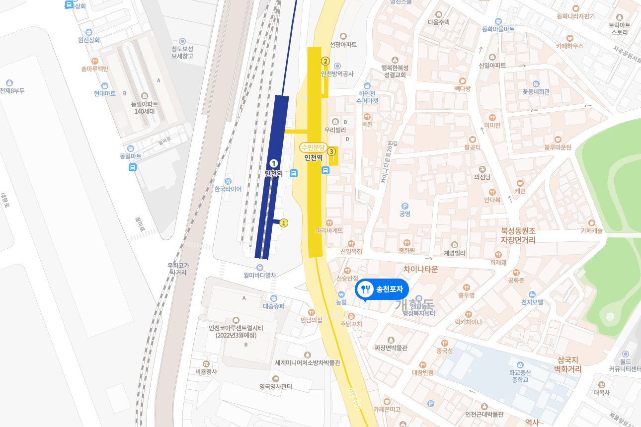 ※ 송천포자방 찾아가는 길 : 수도권 전철 1호선, 수인선 인천역 건너편, 농협 골목을 끼고 언덕 위로 올라가는 길목