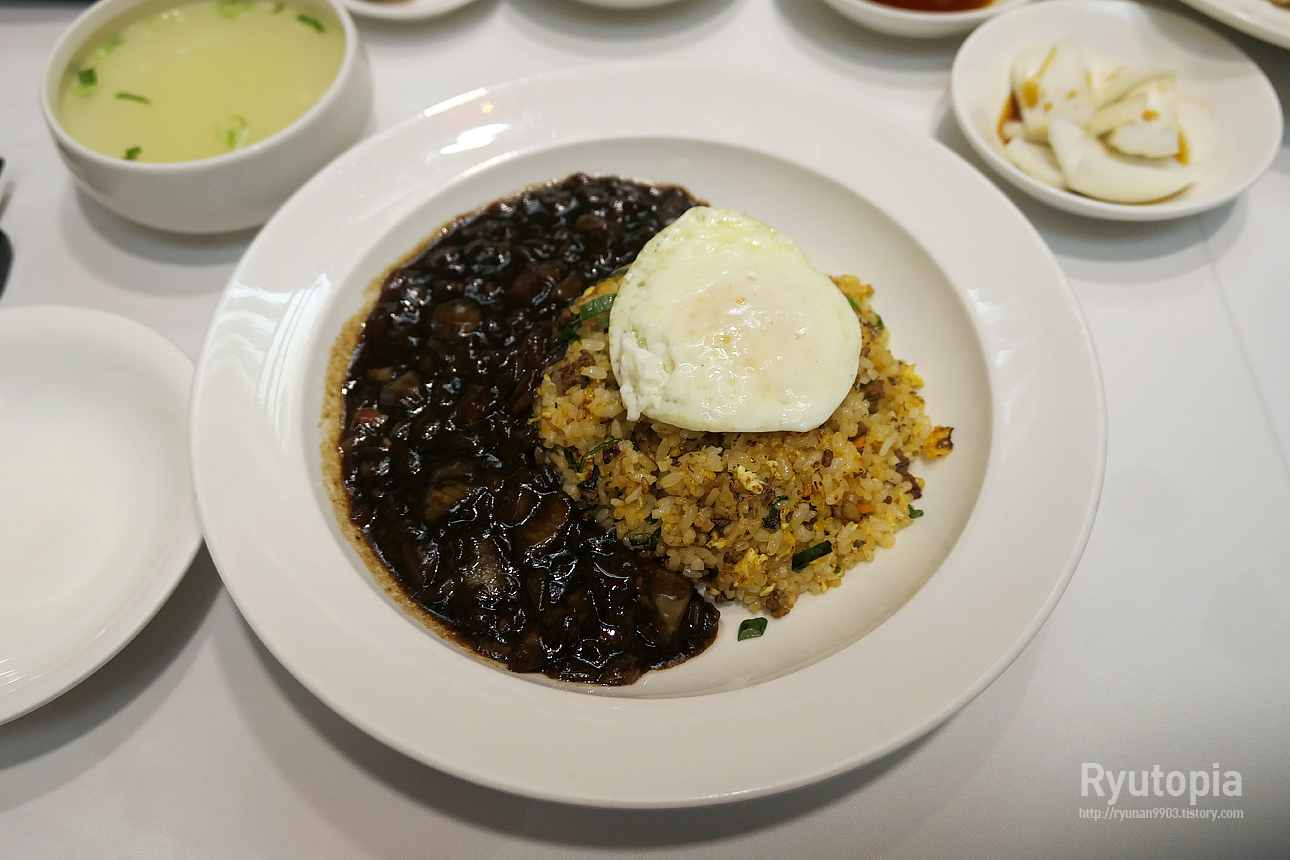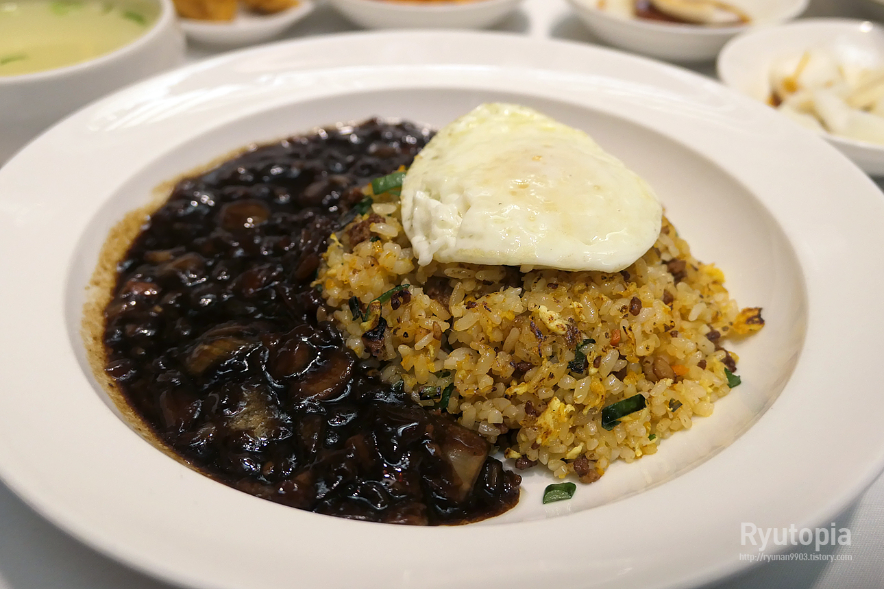 살짝 그을린 자국이 보일 정도로 고슬고슬하게 볶아낸 볶음밥과 함께 계란후라이, 그리고 짜장소스가 함께 나오는데