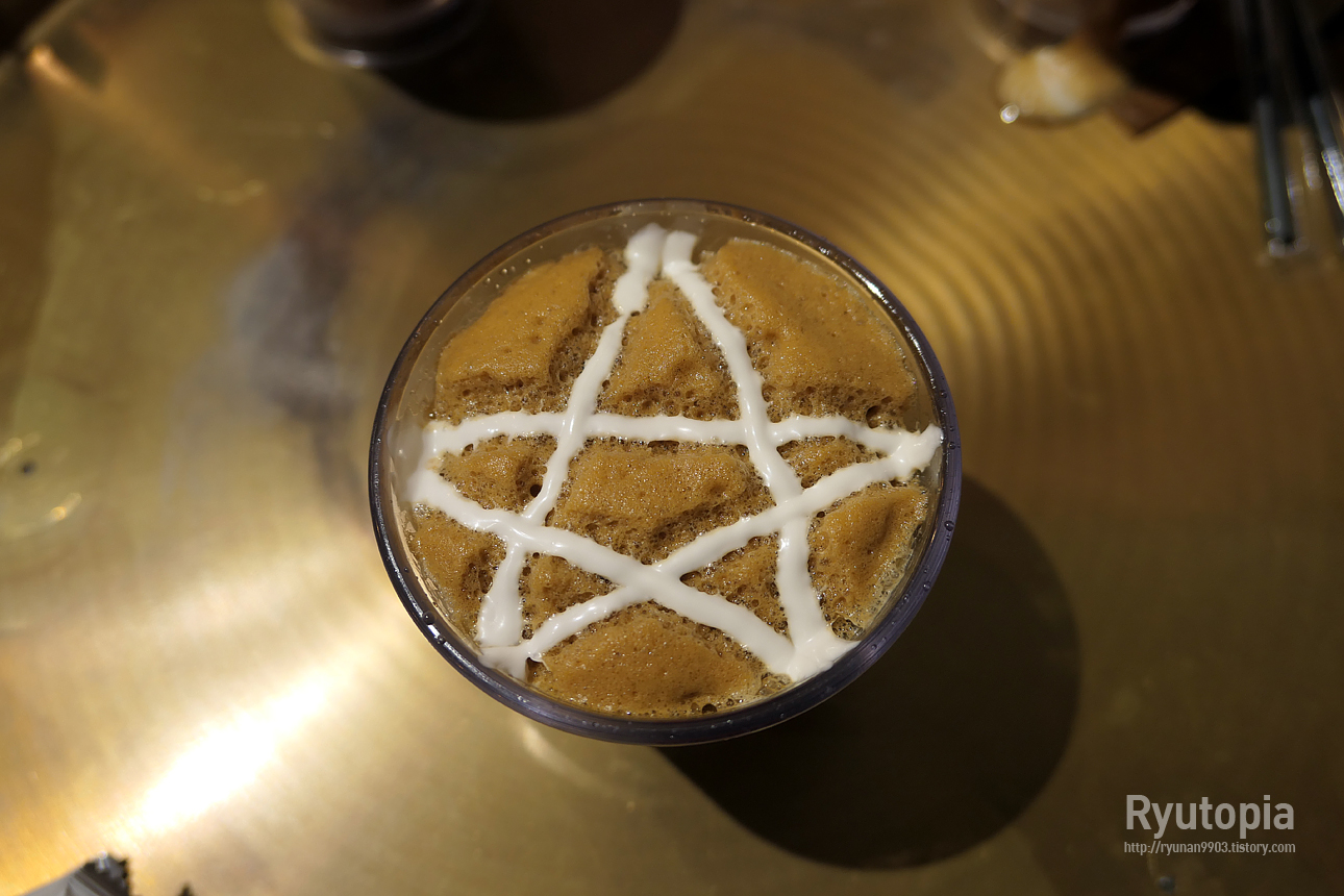 에스프레소 폼 위에 별 문양을 낸 코코넛 연유커피는 그냥 마시는 게 아니라 스푼으로 폼을 떠서 즐길 수 있는데요...