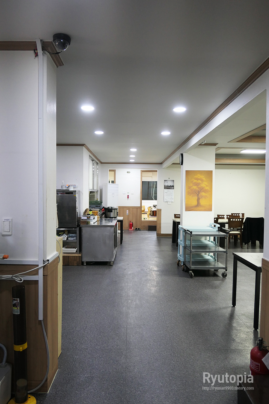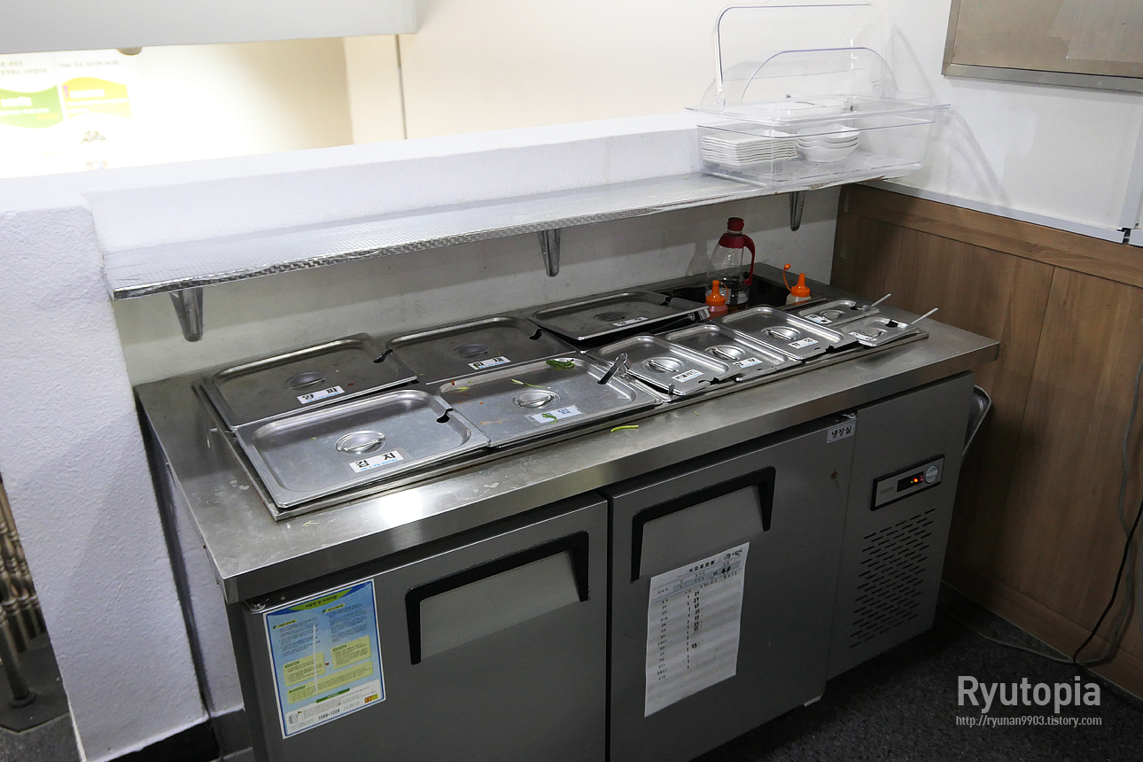 계단 옆 복도 중앙에 셀프 바가 있어 여기서 추가 밑반찬을 직접 가져다먹을 수 있습니다.