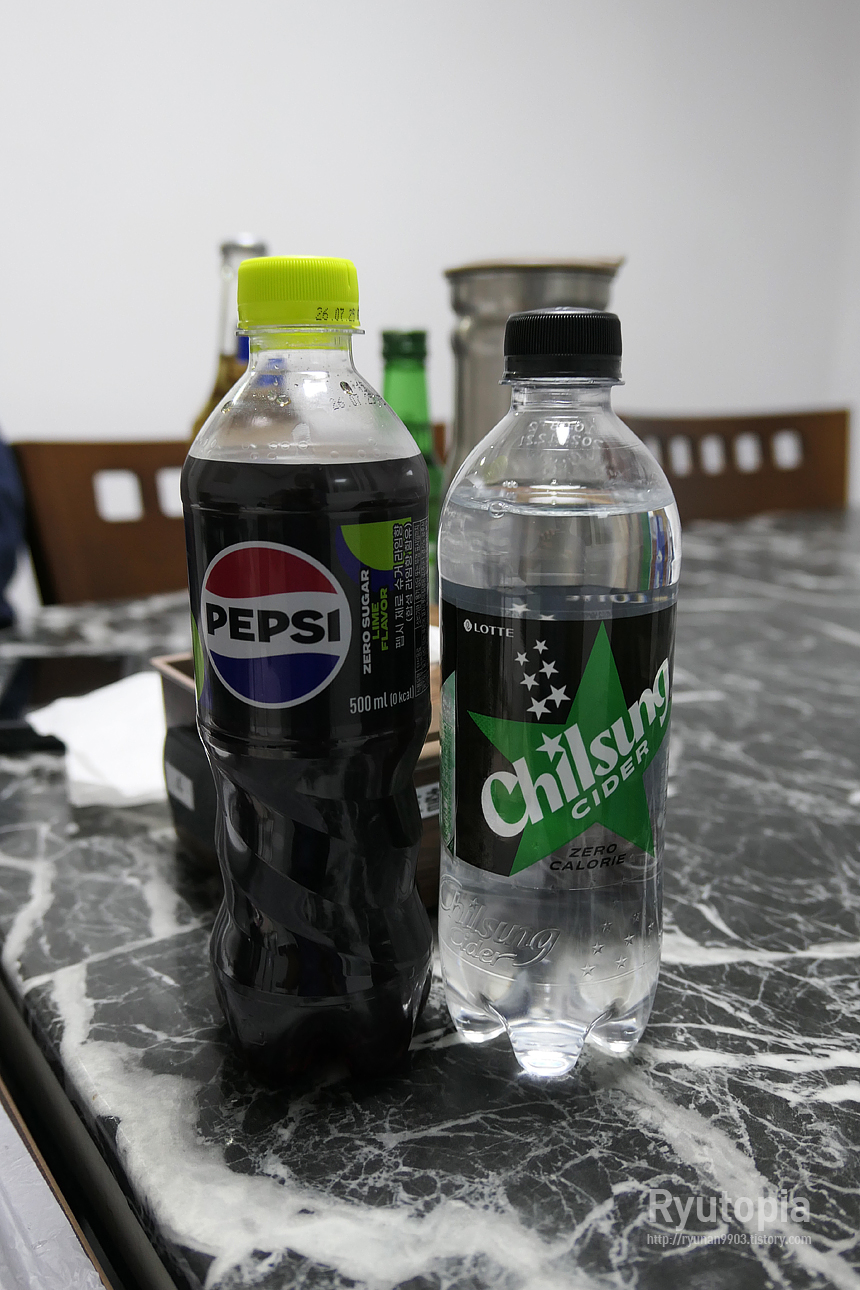 사이다와 콜라는 제로도 선택 가능. 특히 일반식당에서도 흔치 않은 칠성사이다 제로칼로리가 구비되어 있다는 게 살짝 놀랐음.