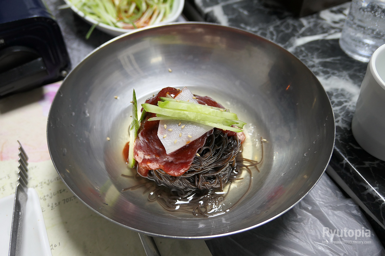 검은 면발의 칡냉면인데, 외관상으론 살짝 부실해보여도 맛이 꽤 괜찮았음.