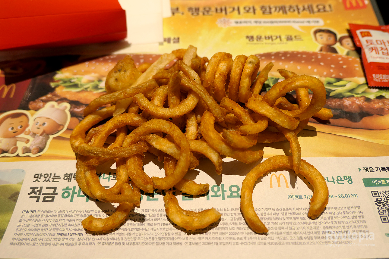 맥도날드 행운버거 시즌엔 행운버거 자체보다 이 컬리후라이 먹기 위해 기다리는 사람이 더 많을 정도의 맥도날드 최고 인기상품.