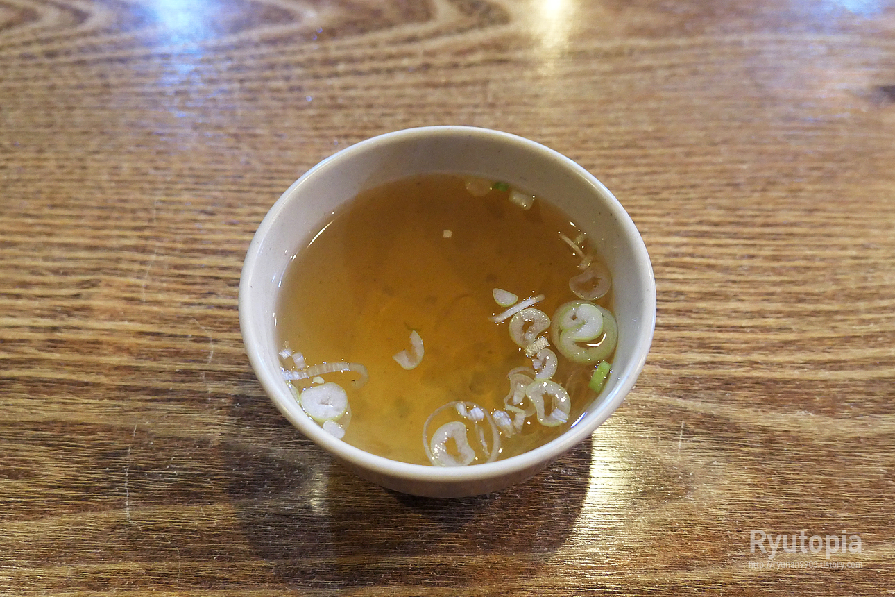 김밥천국 같은 분식집에서도 나올 법한 장국 국물이 함께 나왔고요...