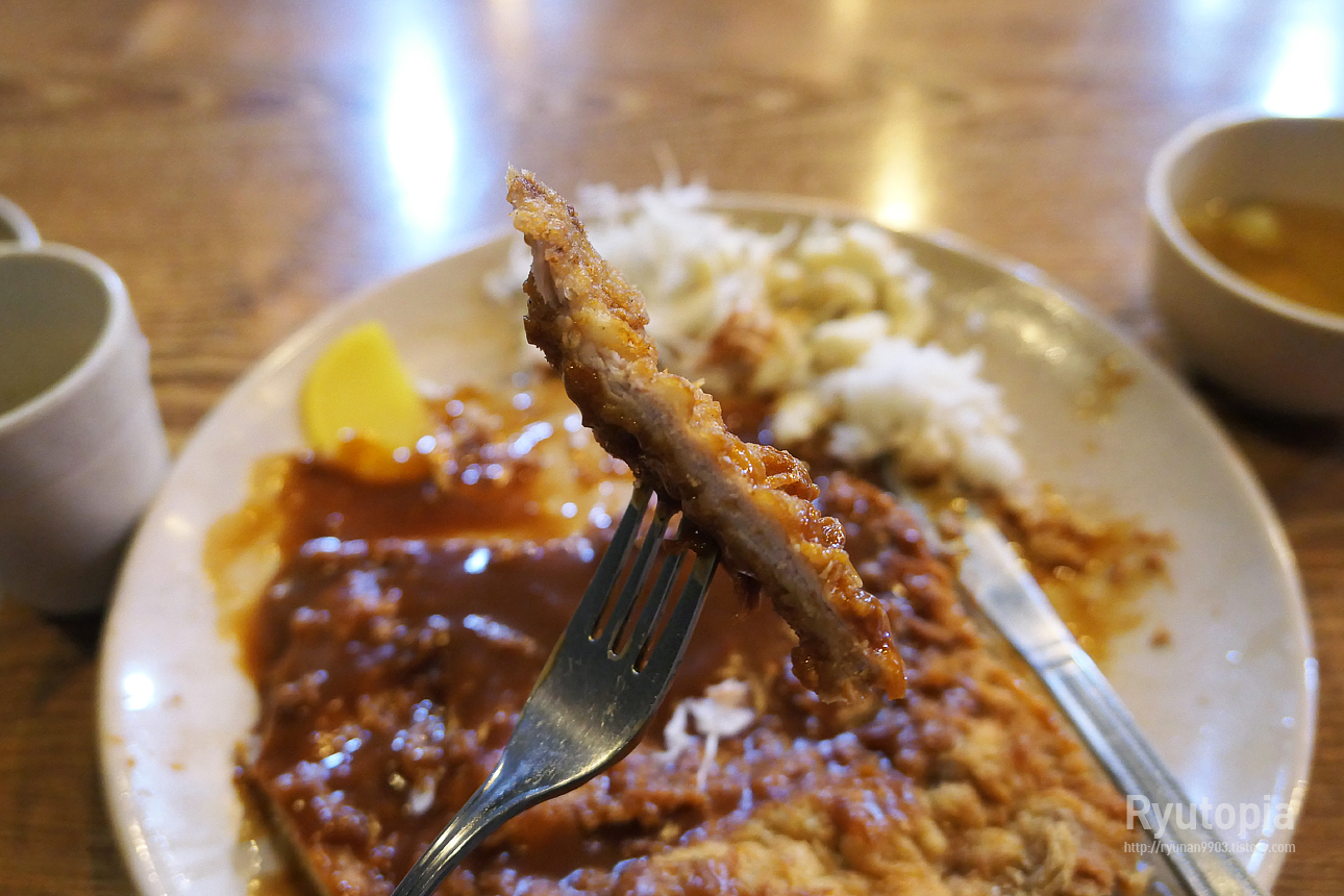 튀김 상태는 꽤 괜찮은 편. 약간 빠삭빠삭한 돈까스라기보다는 조금 포실포실한 돈까스라는 느낌.