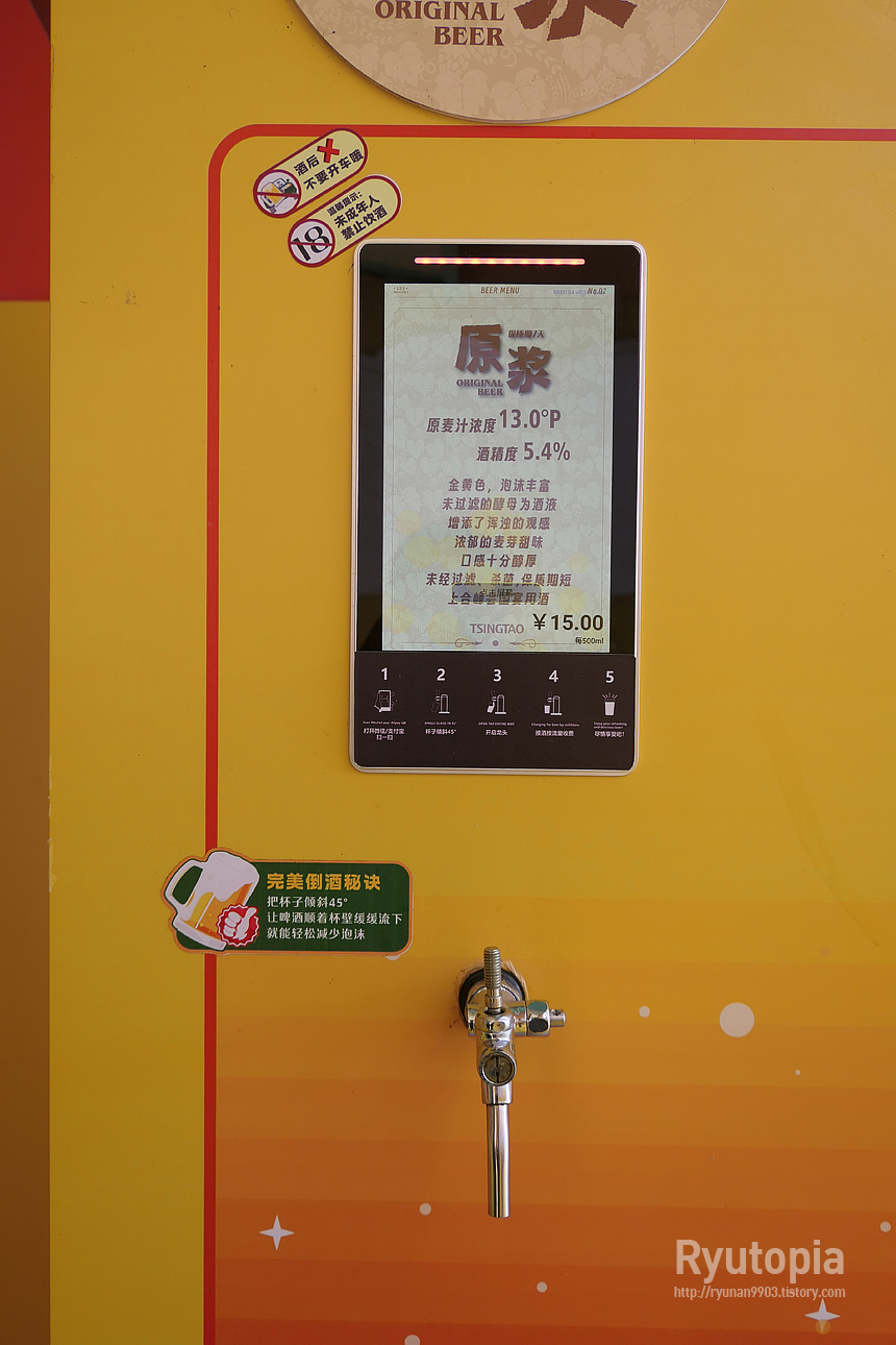 이 곳에도 지난 번 없었던 칭다오 맥주 수도꼭지 무인 자판기가 설치되어 있었다.