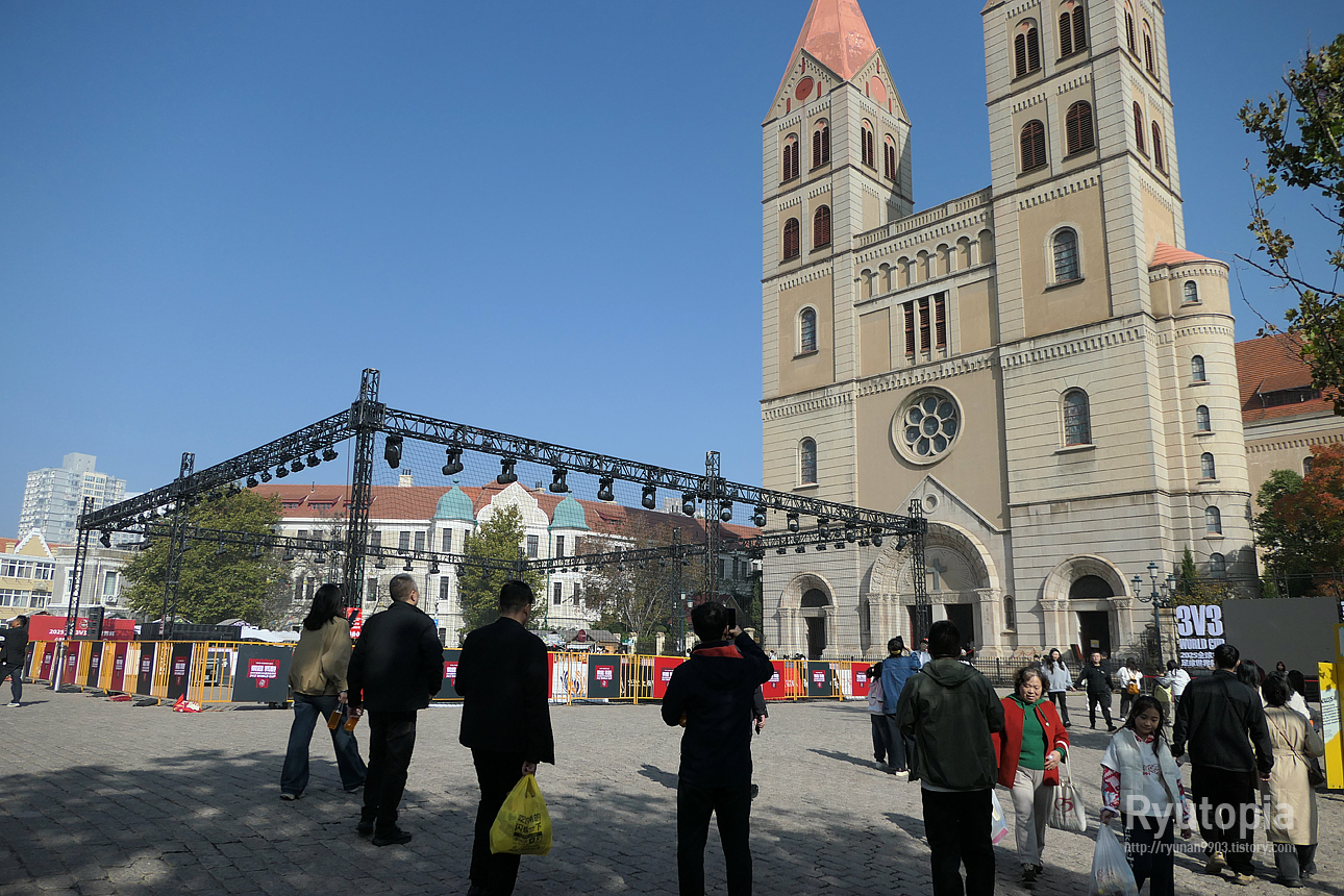 우뚝 솟아있는 두 개의 첨탑에서 성당의 위엄이 느껴짐. 칭다오 관광을 간다면 누구나 반드시 들리게 되는 곳.
