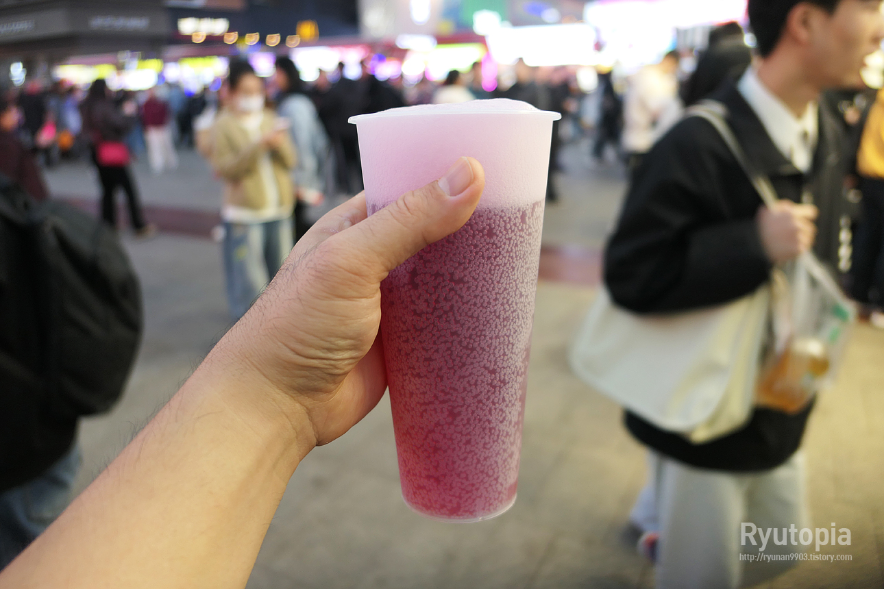 지난 여행 땐 보지 못한 새로운 무언가가 생겼다. 다른 노점들보다 더 밝은 간판 앞에 사람들이 모여있는 저것의 정체는 무엇일까?