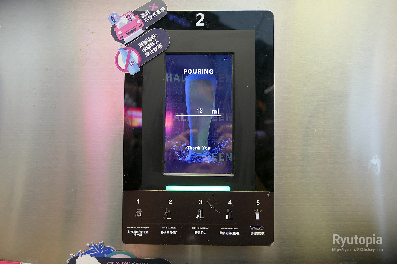 직접 맥주를 따르면 된다. 결제를 안 하면 디스펜서 꼭지를 내려도 술이 나오지 않으니 무조건 QR코드를 통해 결제를 진행해야 함.