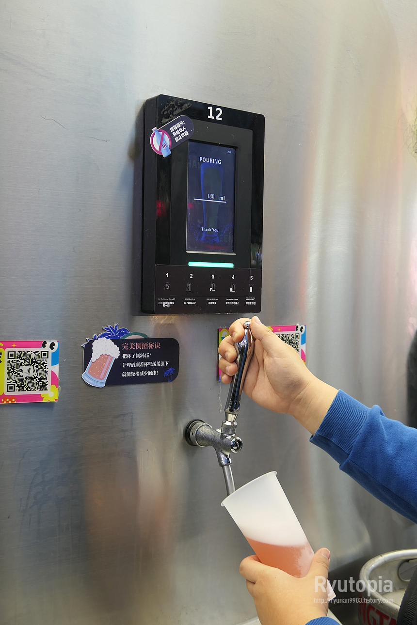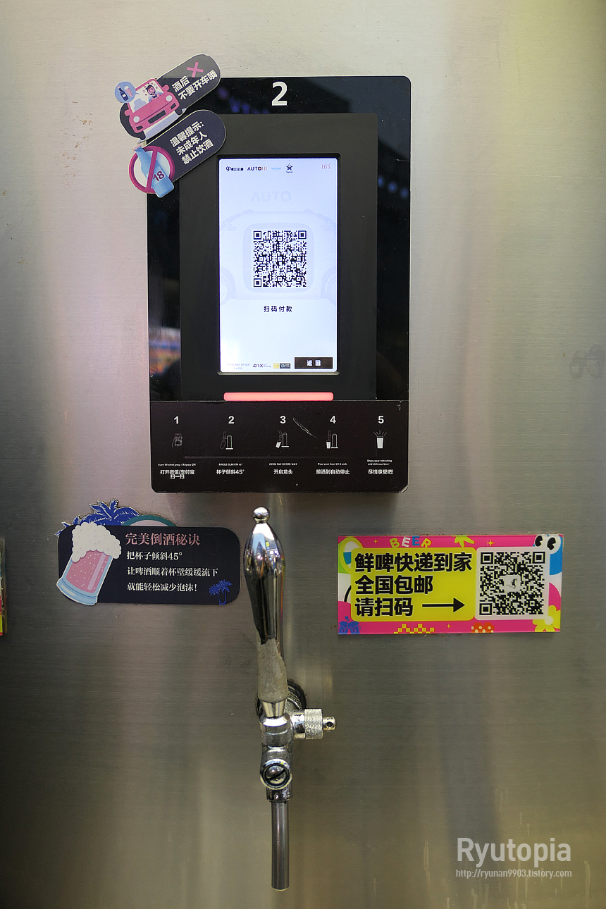화면에 뜬 QR코드를 알리페이 등으로 스캔하여 결제를 하면 이제 맥주를 담을 수 있다.