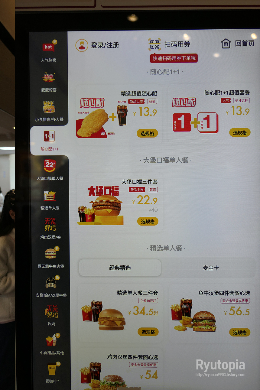생각해보니 지난 여행 때도 그렇고 중국의 맥도날드를 한 번도 가본 적 없어 어떤 식인지 나도 살짝 궁금했던 게 있었기도 하고...