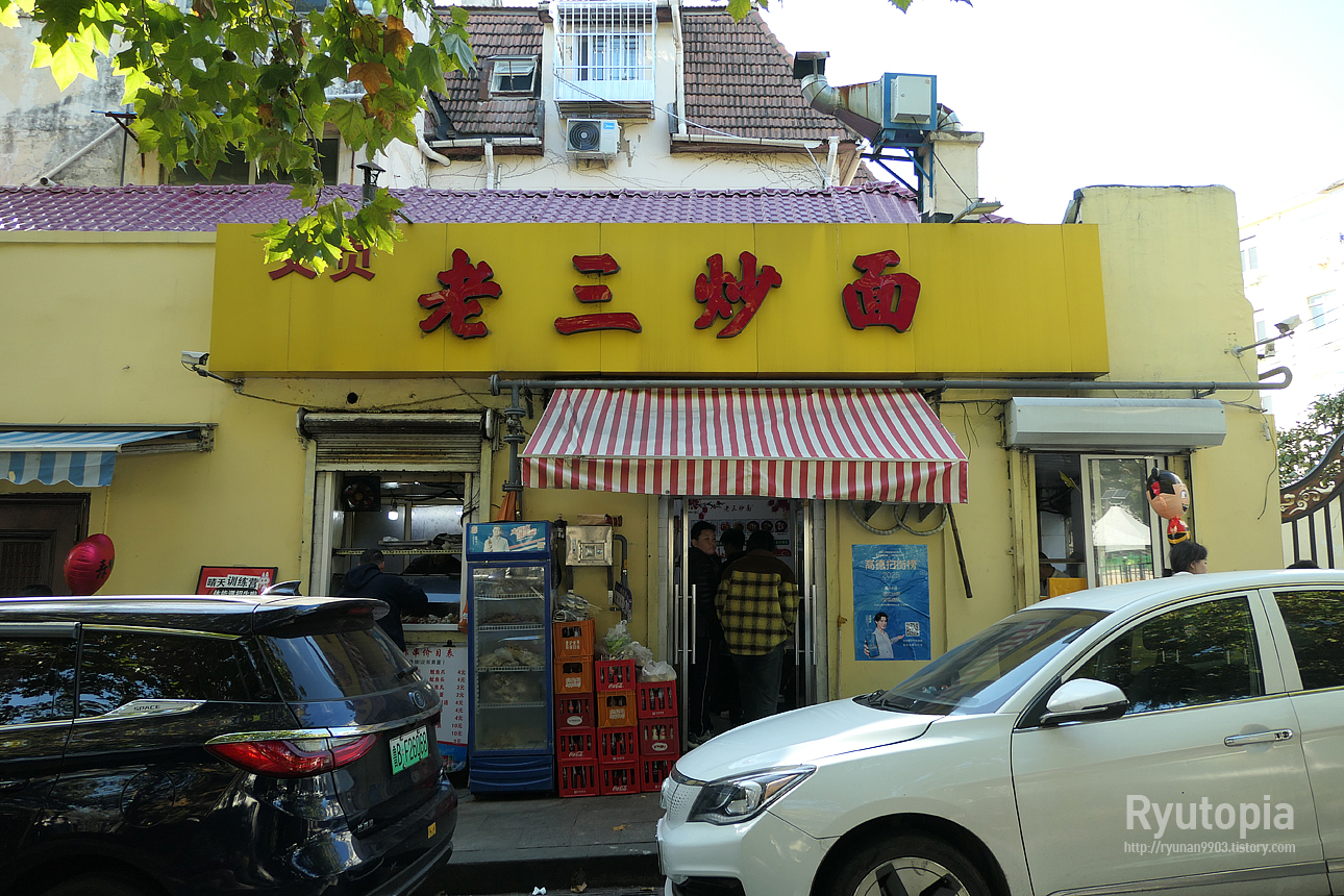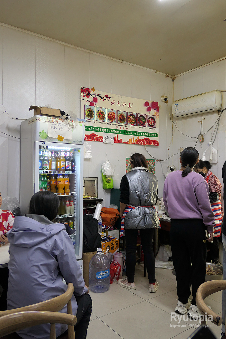 '라오산초미옌(老三炒面-노삼초면)' 이라 하는 작은 가게로 여기는 면 요리 전문점이지만, 꼬치류도 함께 취급한다고 한다.