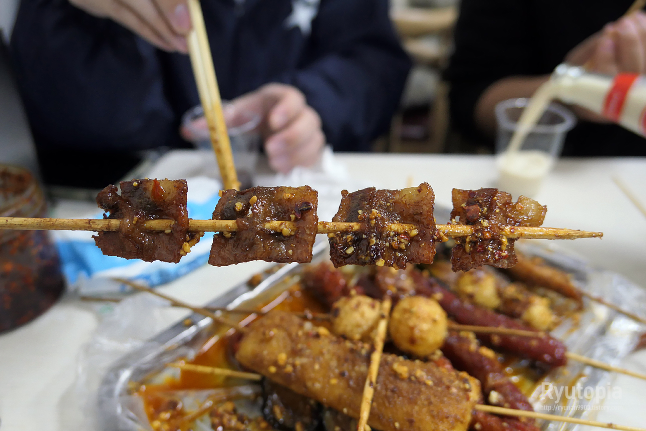 물론 꼬치에 바르는 소스는 매콤달콤한 고추장 소스와 완전히 다른 기름지고 얼얼한 중국의 마라 소스긴 하지만 말이다.