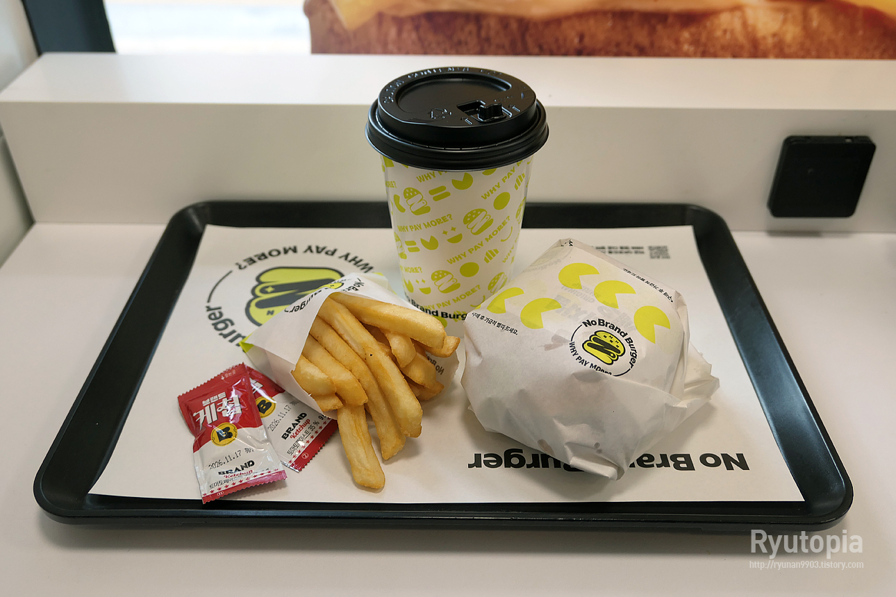 저는 출시와 동시에 노브랜드버거 애플리케이션에서 단품 구매시 세트 업그레이드 해 주는 쿠폰을 이용하여 먹어보았습니다.