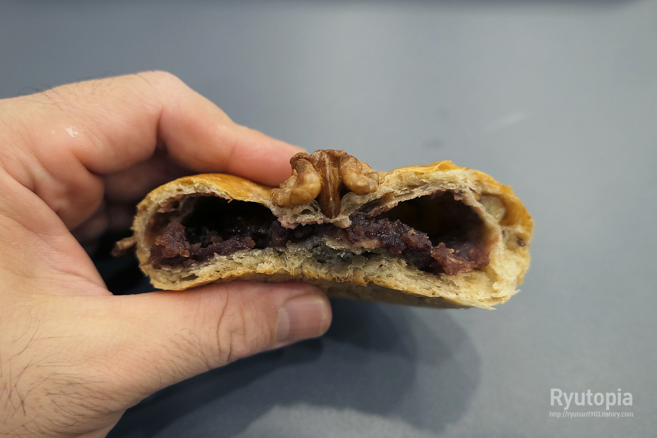 팥앙금은 달지 않으면서도(은은한 단맛은 있습니다) 촉촉하고 호두는 고소해서 꽤 좋은 풍미를 내는 게 상당히 마음에 들었습니다.