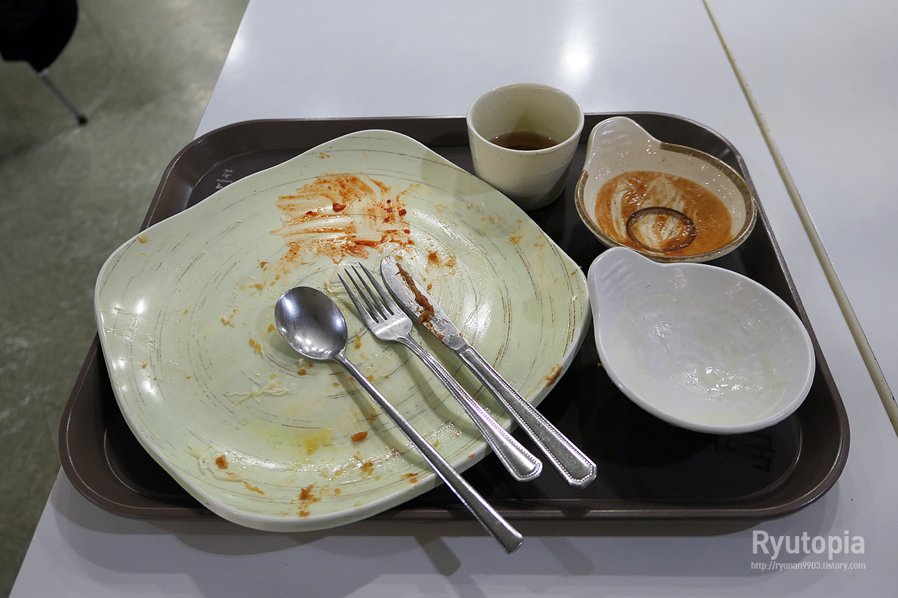 가서 이거 이상하다고 말할까 하다 그냥 수프도 있으니 먹지 말아야지 하고 안 먹었는데, 다행히 조금 먹은걸로 탈은 안 났습니다.