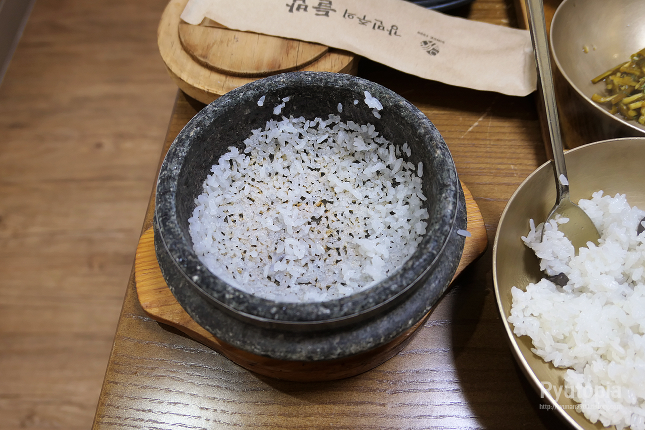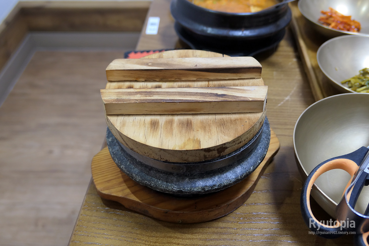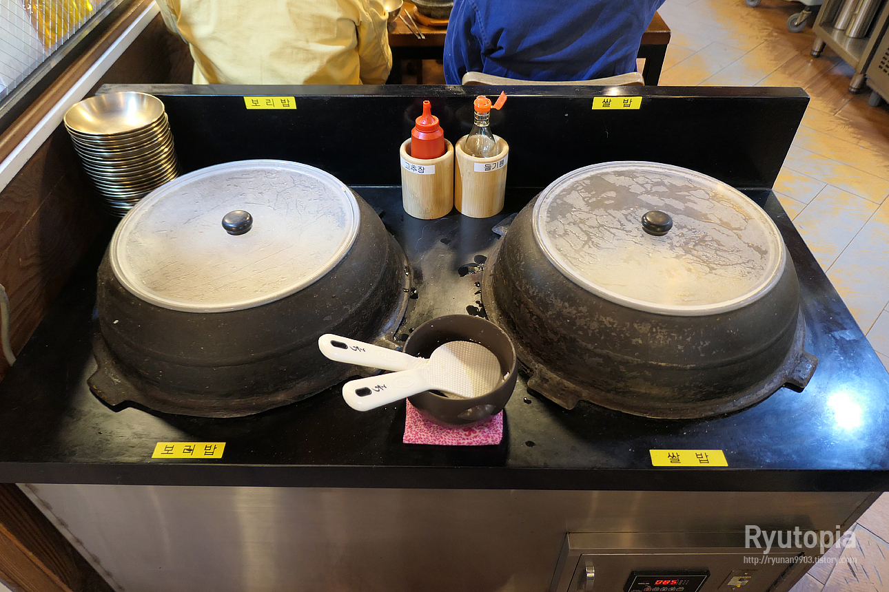 식사 시키면 기본적으로 1인 돌솥밥이 나오긴 하는데, 더 먹고싶을 때 추가밥은 이렇게 직접 가마솥에서 담아먹을 수 있습니다.
