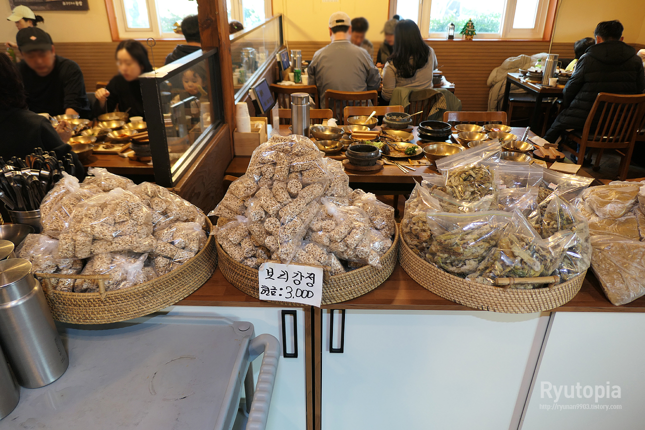 매장에서 제공하는 기본찬과는 겹치지 않는 마른반찬류와 김치는 이렇게 앞에 비치되어 있어 식사 후 사갈 수 있게 해 놓았어요.