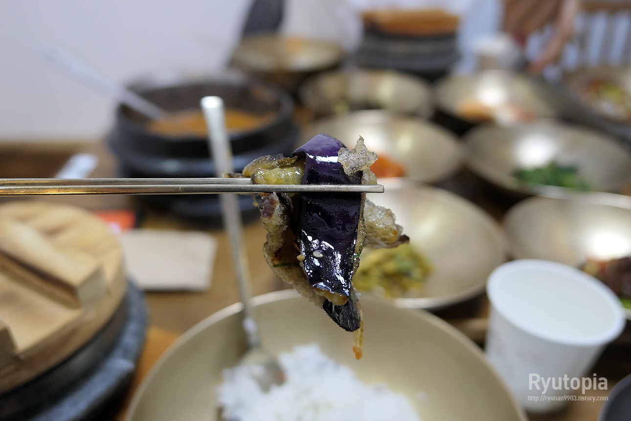 부담없이 먹기 좋습니다. 가지요리는 중화풍으로 튀겨야 맛있다고 생각했는데 한식으로 조리해서 무쳐도 이렇게 맛있다는 걸