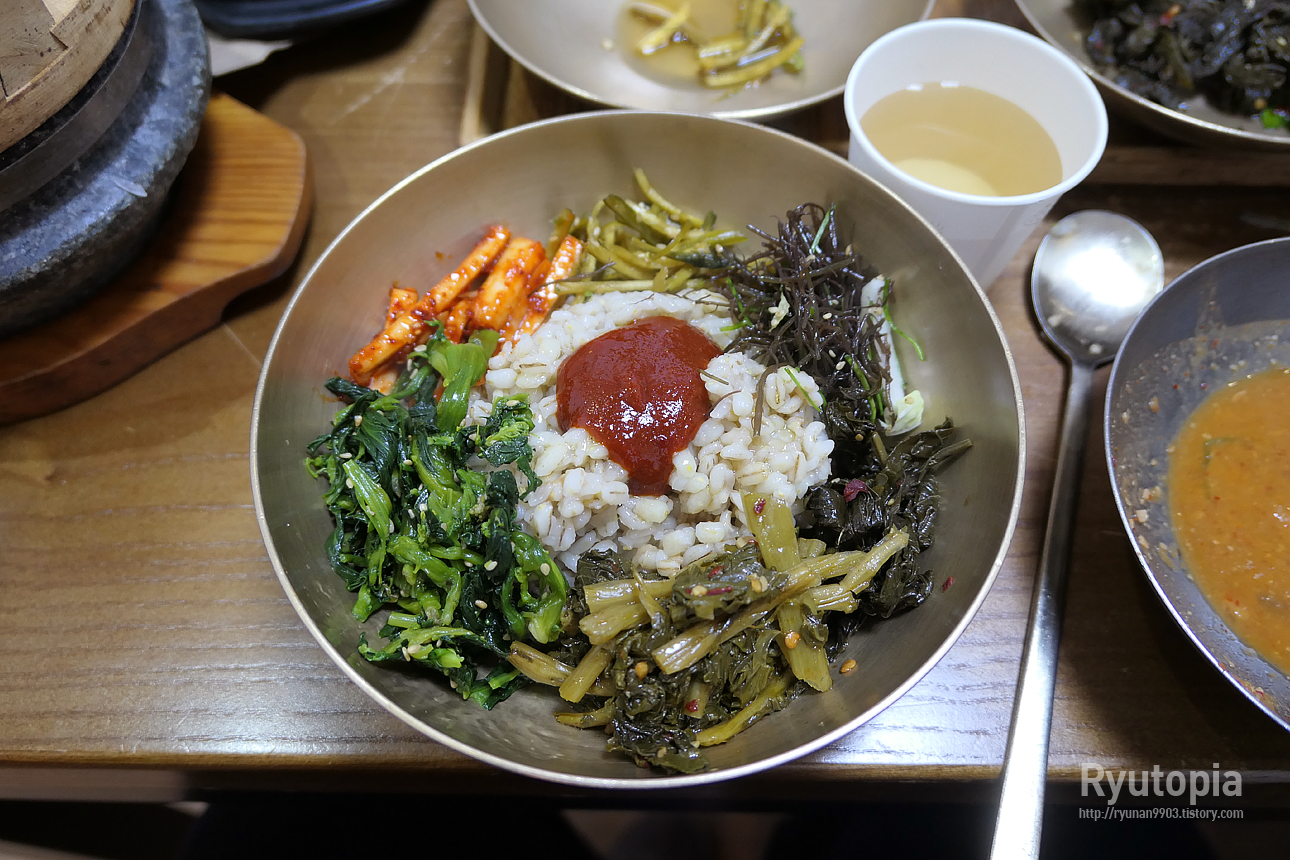 배가 불러도 계속 뱃속에 들어가게 만드는 마성의 맛이 있음. 진짜 여기선 쌀밥만 먹고 끝내지 말고 보리비빔밥을 꼭 먹어야 함.