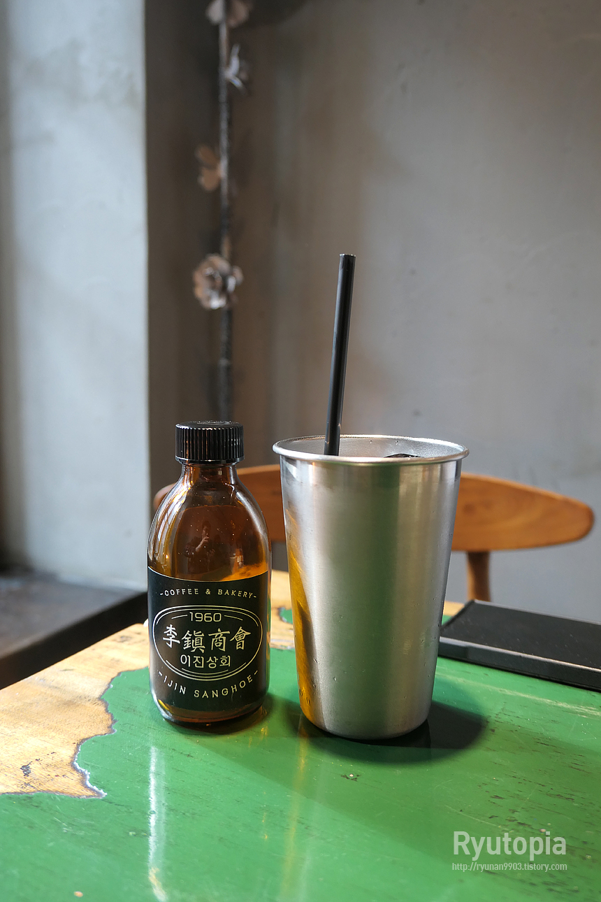 콜드브루를 주문했는데, 이진상회 상호가 박힌 라벨이 붙어있는 작은 콜드브루 병을 내어주더군요. 이걸 그대로 마시라고...?!