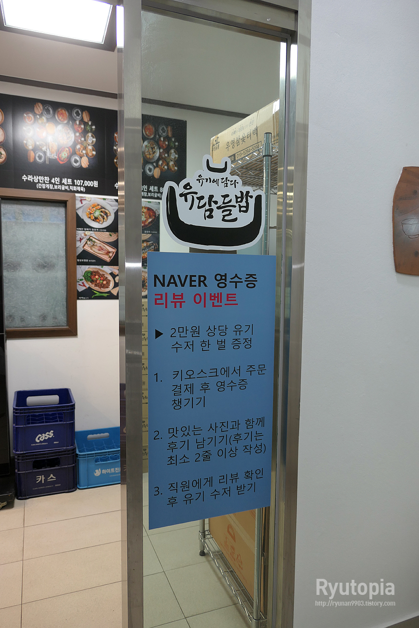 강민주의 들밥과 마찬가지로 기본 유담정식에 요리 하나를 추가하는 방식으로 주문하면 되는데 요리 하나는 필수 추가라 하던...