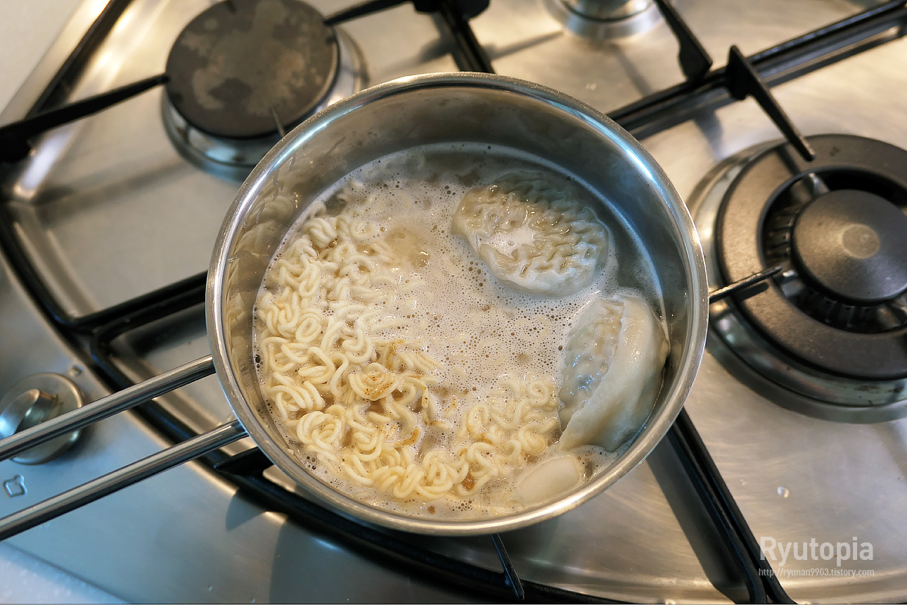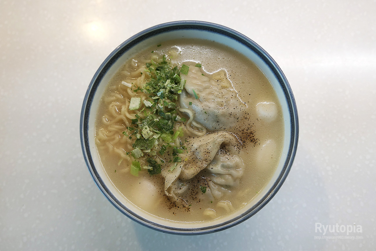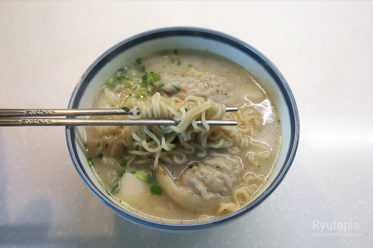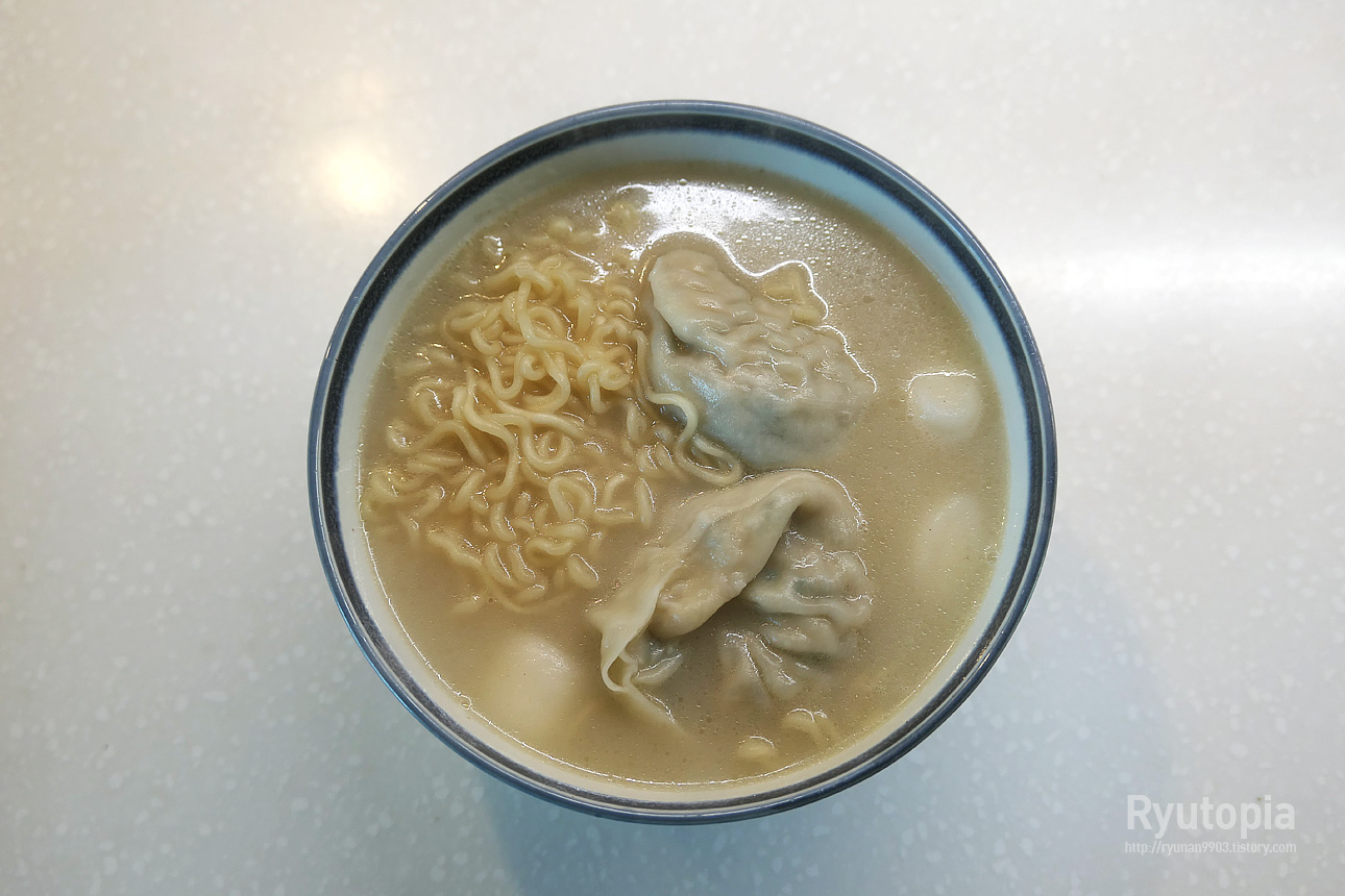 국물도 적당히 뽀얀 편이라 부담없이 먹기 좋고 만두 넣어먹으니 은근 만두국 느낌 나고 괜찮더라고요.