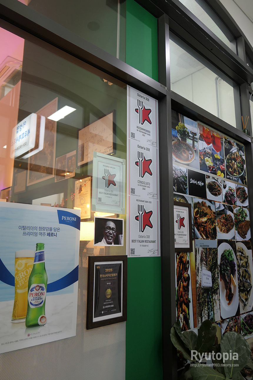 집 근처에 타 지역의 손님이 찾아오셔서 함께 방문한 이탈리안 요리 전문점 '오스테리아 308' 이란 곳입니다.