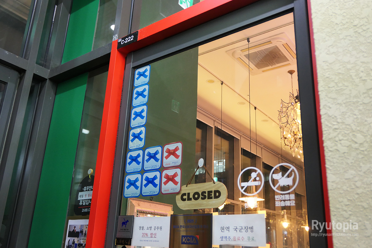 나름 괜찮은 가게인지 블루리본 서베이 스티커도 꽤 많이 붙어있습니다.