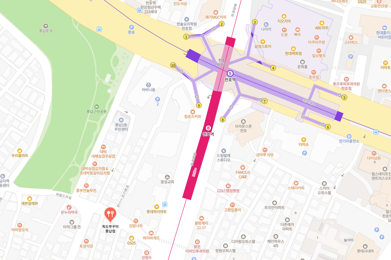 ※ 독도쭈꾸미 풍납점 찾아가는 길 : 지하철 5,8호선 천호역 9번출구 하차 후 직진, 파리바게뜨를 끼고 우회전, 풍납시장 입구