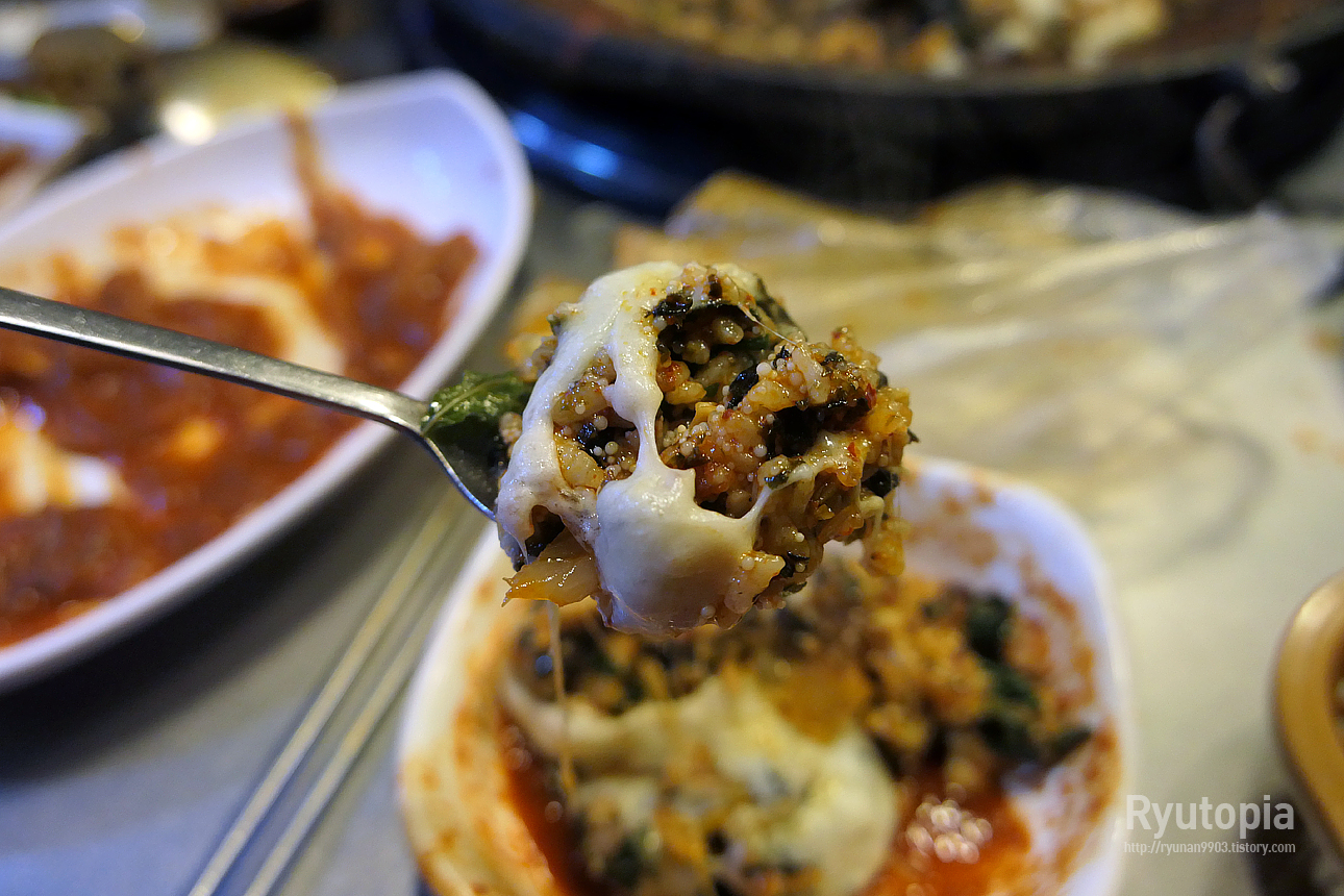 쭈꾸미, 고기야 다 비슷비슷하지만 그래도 양념이 딱 기분좋게 맛있는 매콤함이었고 치즈 넣은 날치알볶음밥도 매력적이었어요.