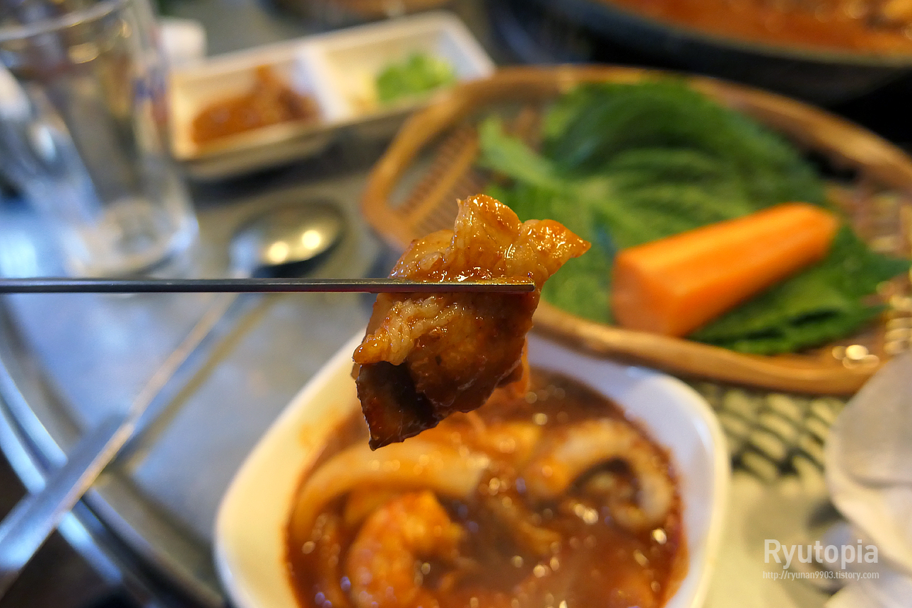저는 개인적으로 쭈꾸미 먹을 때 함께 볶는 삼겹살을 제일 좋아합니다. 어째서인지 쭈꾸미보다 이 쪽이 더 맛있을 때가 있음.