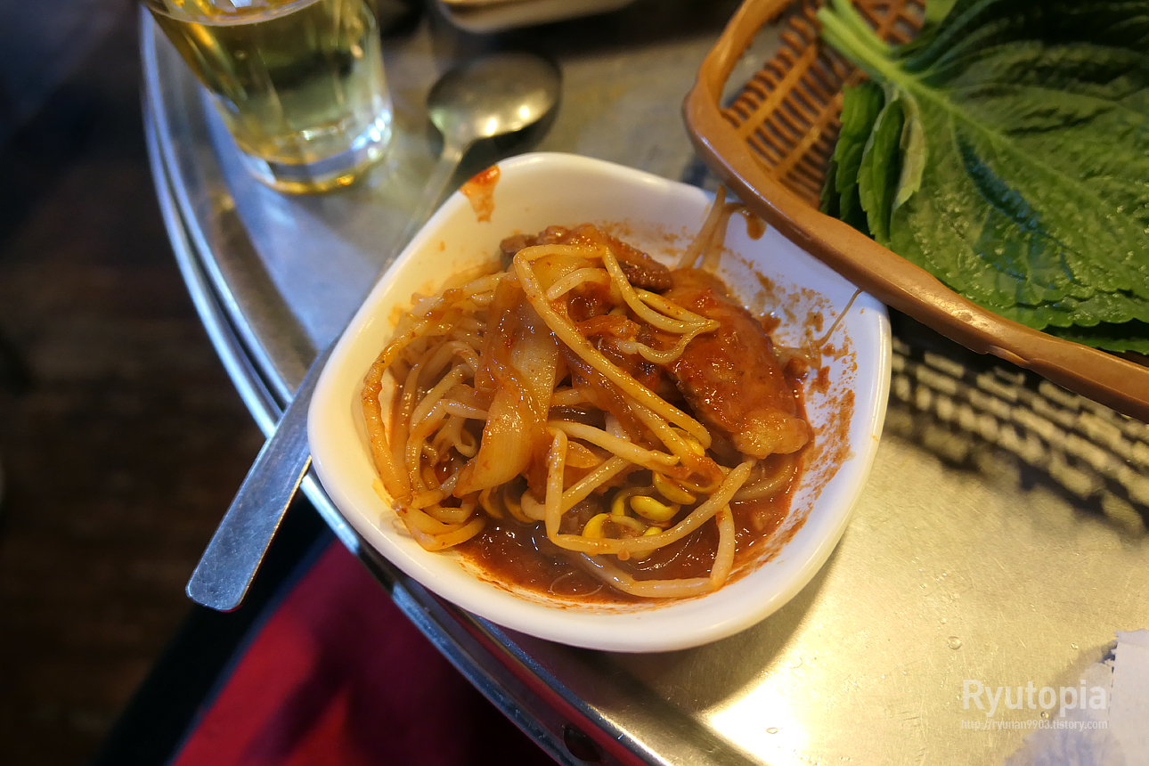 양념 듬뿍 머금은 콩나물과 당면은 건더기 없이 그냥 이거 먹는 것만으로도 좋아요.