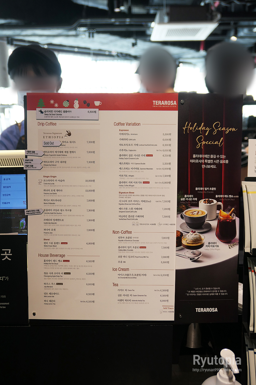 매장에서 판매하는 음료 메뉴. 저는 겨울 시즌 음료인 '윈터 드림 블렌드' 커피 주문.