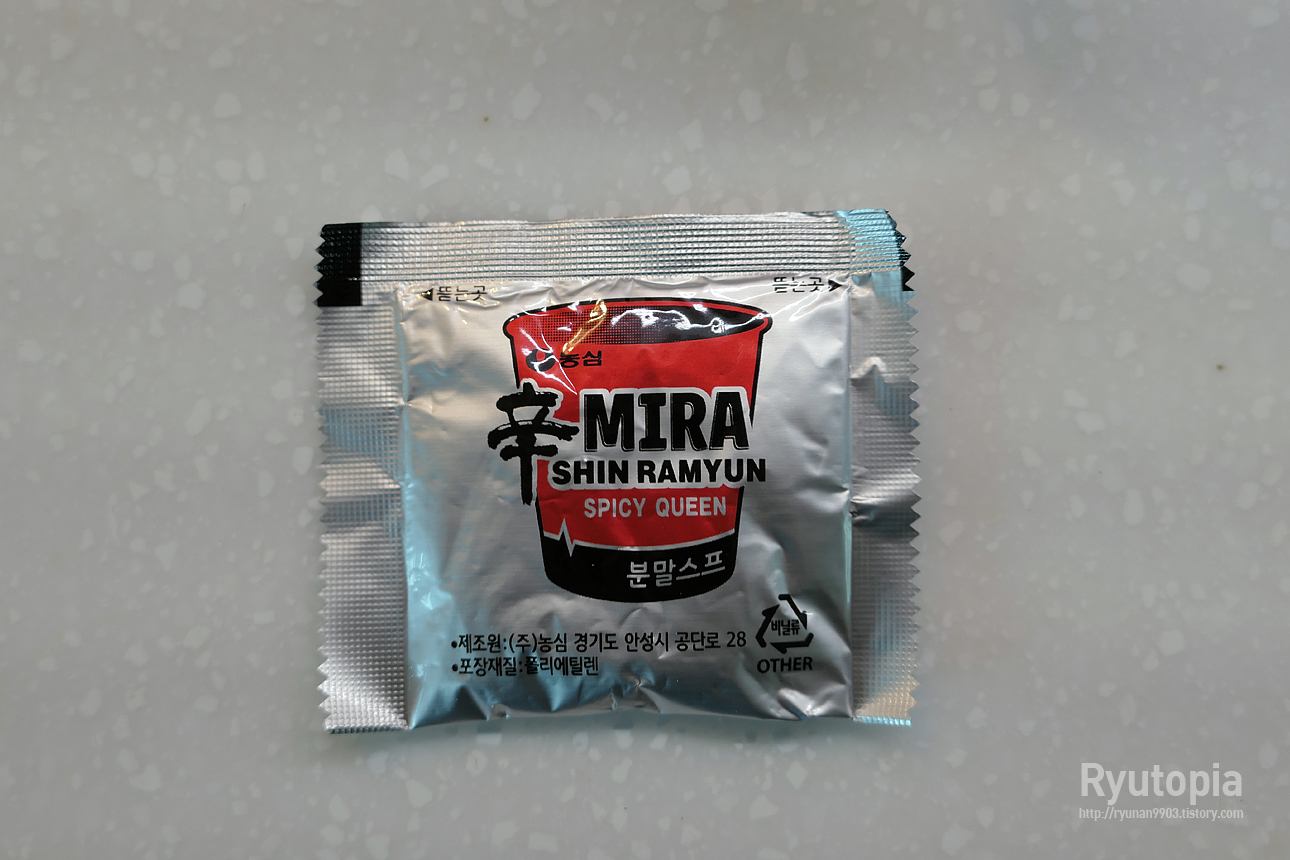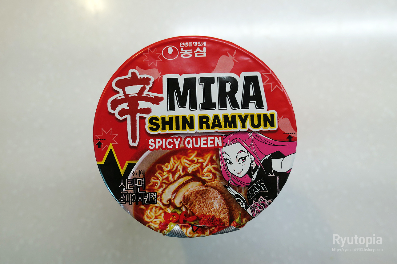 메인댄서 겸 비주얼계 담당인 '미라' 의 담당 컵라면으로 이건 매운맛 컵라면이라고 합니다.