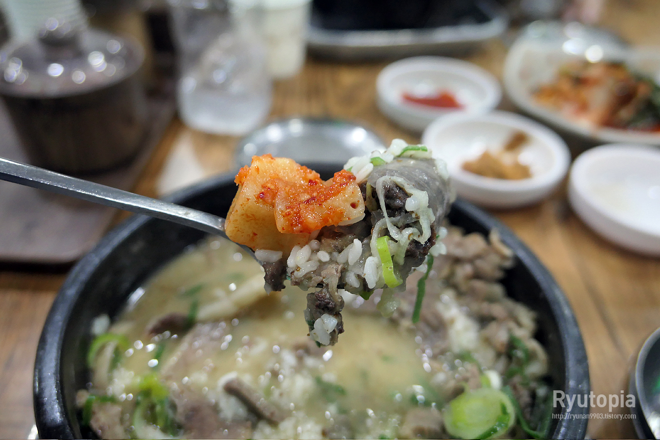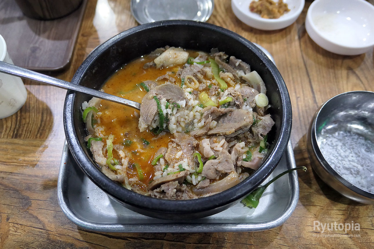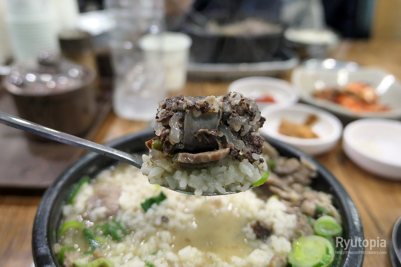 부속고기는 물론 살코기도 돼지국밥 이상으로 가득 들어있어 국물 반 고기 반을 넘어 국물보다 고기가 더 많다는 느낌.
