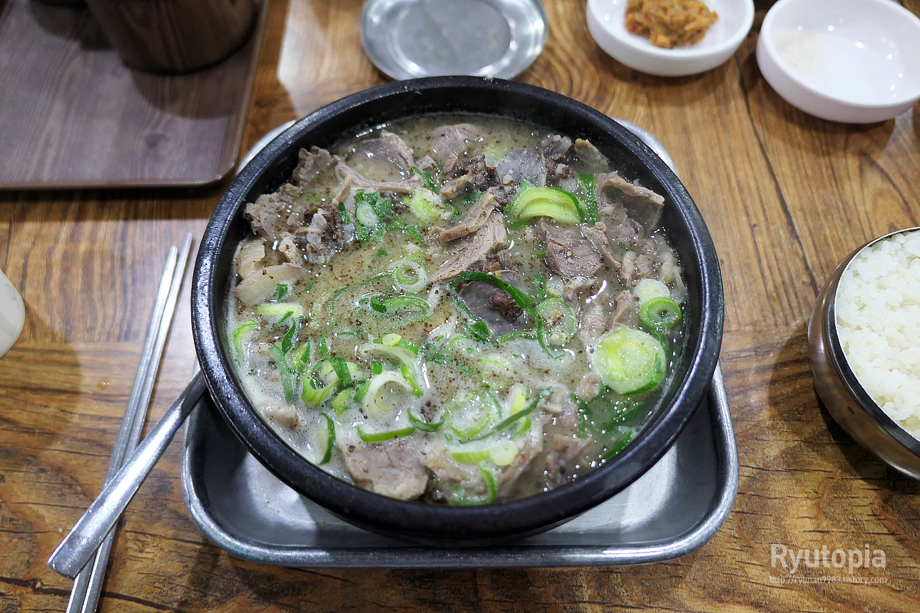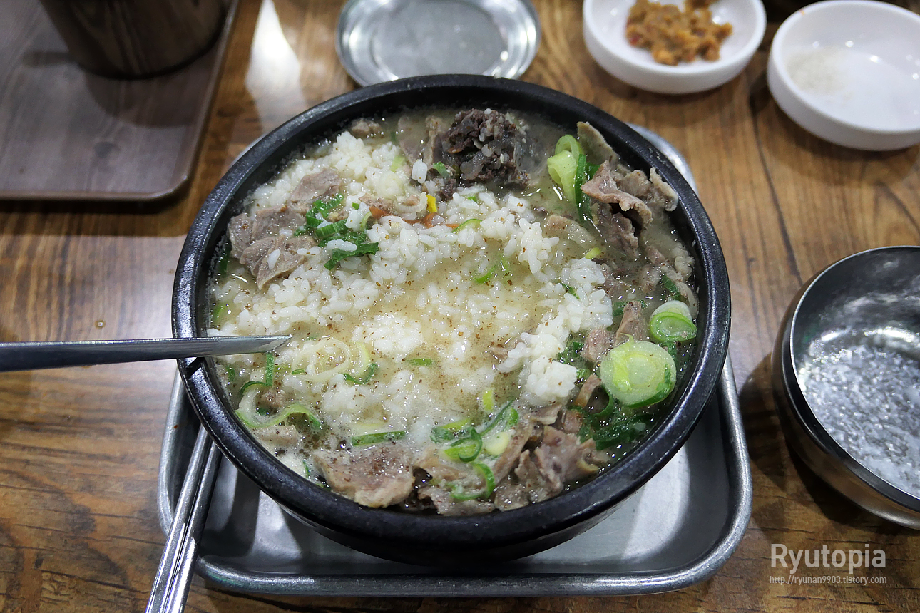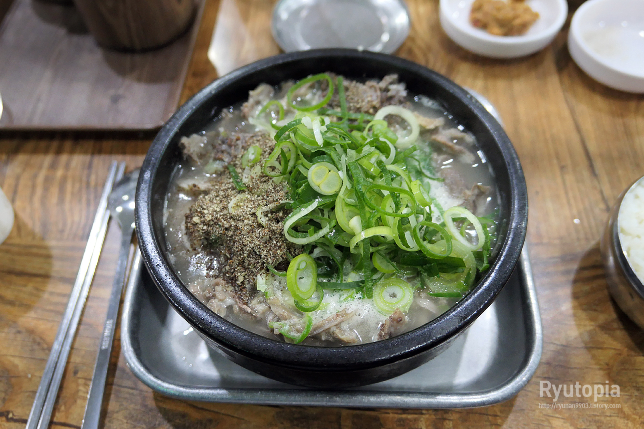 부속고기는 물론 살코기도 돼지국밥 이상으로 가득 들어있어 국물 반 고기 반을 넘어 국물보다 고기가 더 많다는 느낌.