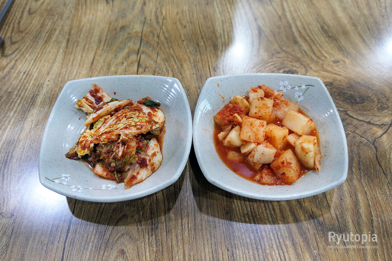 배추김치는 제가 정말 좋아하는 매운 겉절이 스타일, 그리고 깍두기도 살짝 단맛나고 개운하게 잘 익어 국밥과 어울리는 맛.