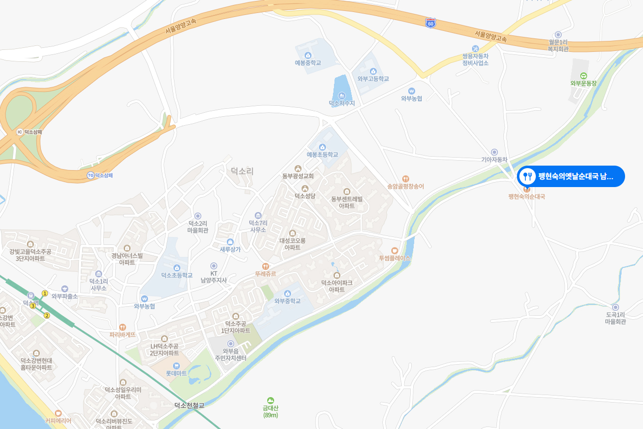 ※ 팽현숙의 옛날순대국 찾아가는 길 : 경기 남양주시 와부읍 월문천로 174(월문리 1049) - 월문교 사거리 근방에 위치