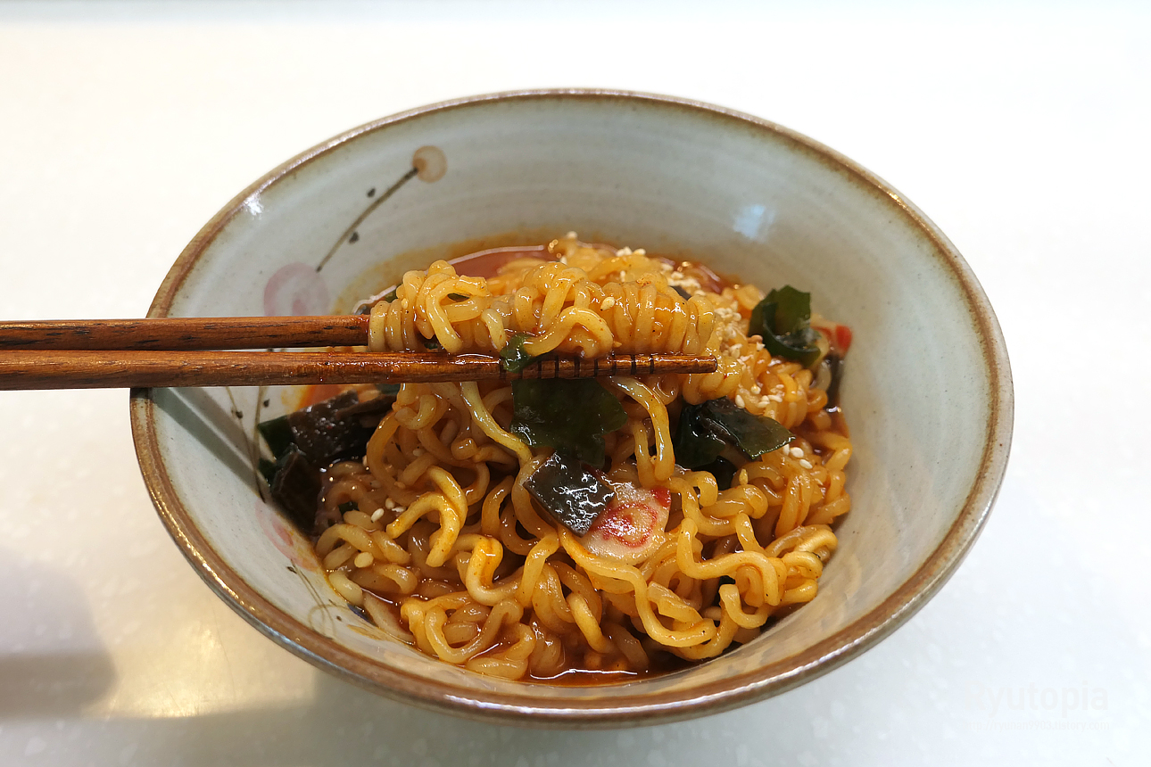 거기에 다시마와 미역이 만들어내는 살짝 비릿한 풍미가 눈에 보이는 해산물이 없어도 '해물맛이다' 라는 걸 느낄 수 있게 해 주는데
